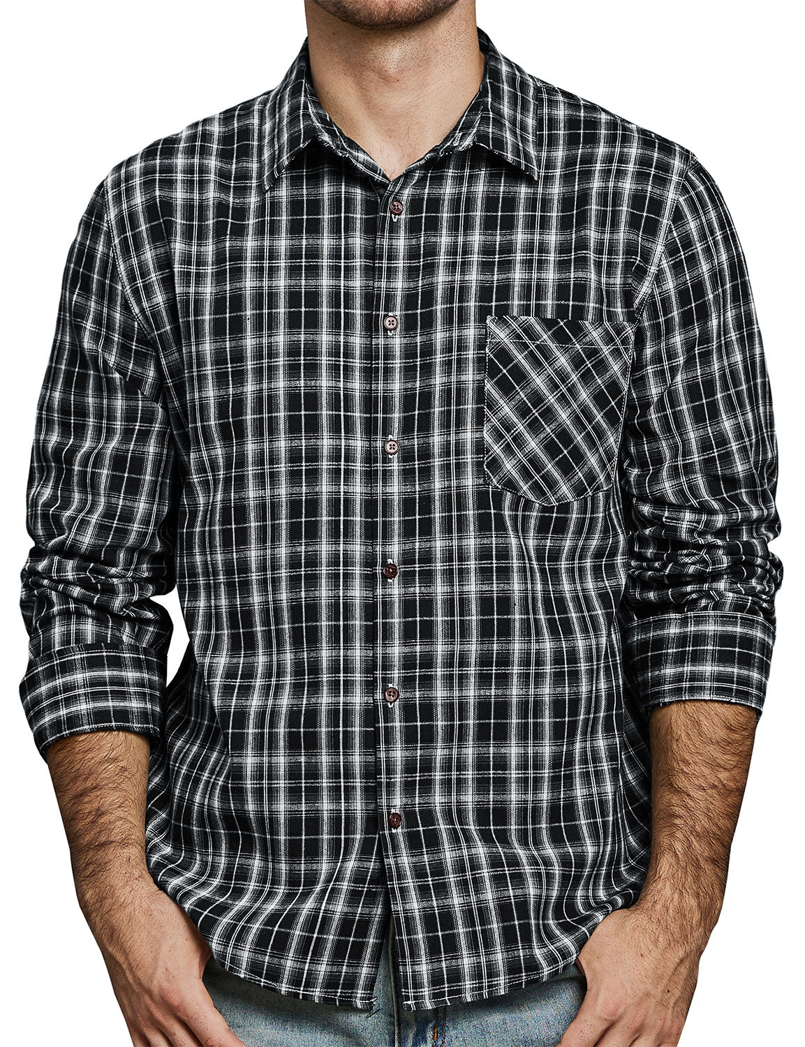Men's Button Up Regular Fit Long Sleeve Plaid Flannel Casual Shirts
