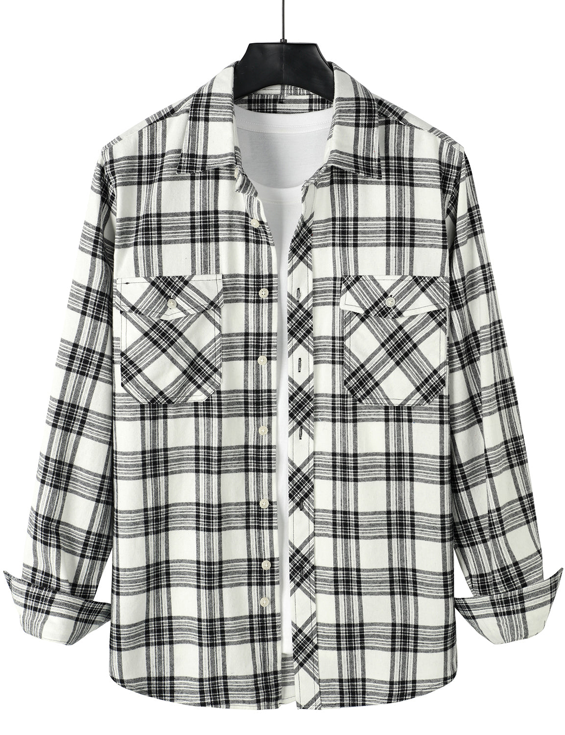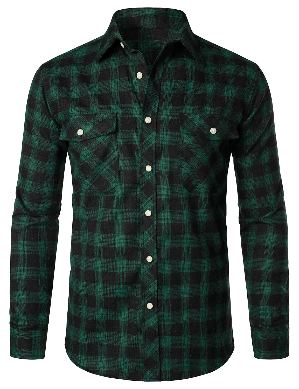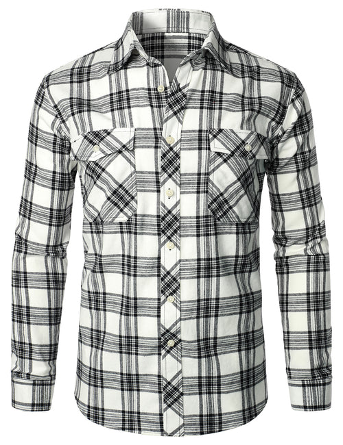 Men's Flannel Double Pocket Checkered Button Up Long Sleeve Casual Plaid Shirt