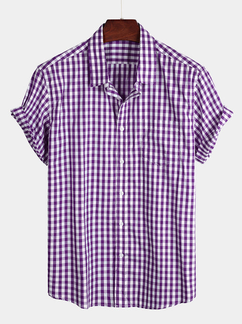 Men's Check Print Cotton Pocket Short Sleeve Shirt
