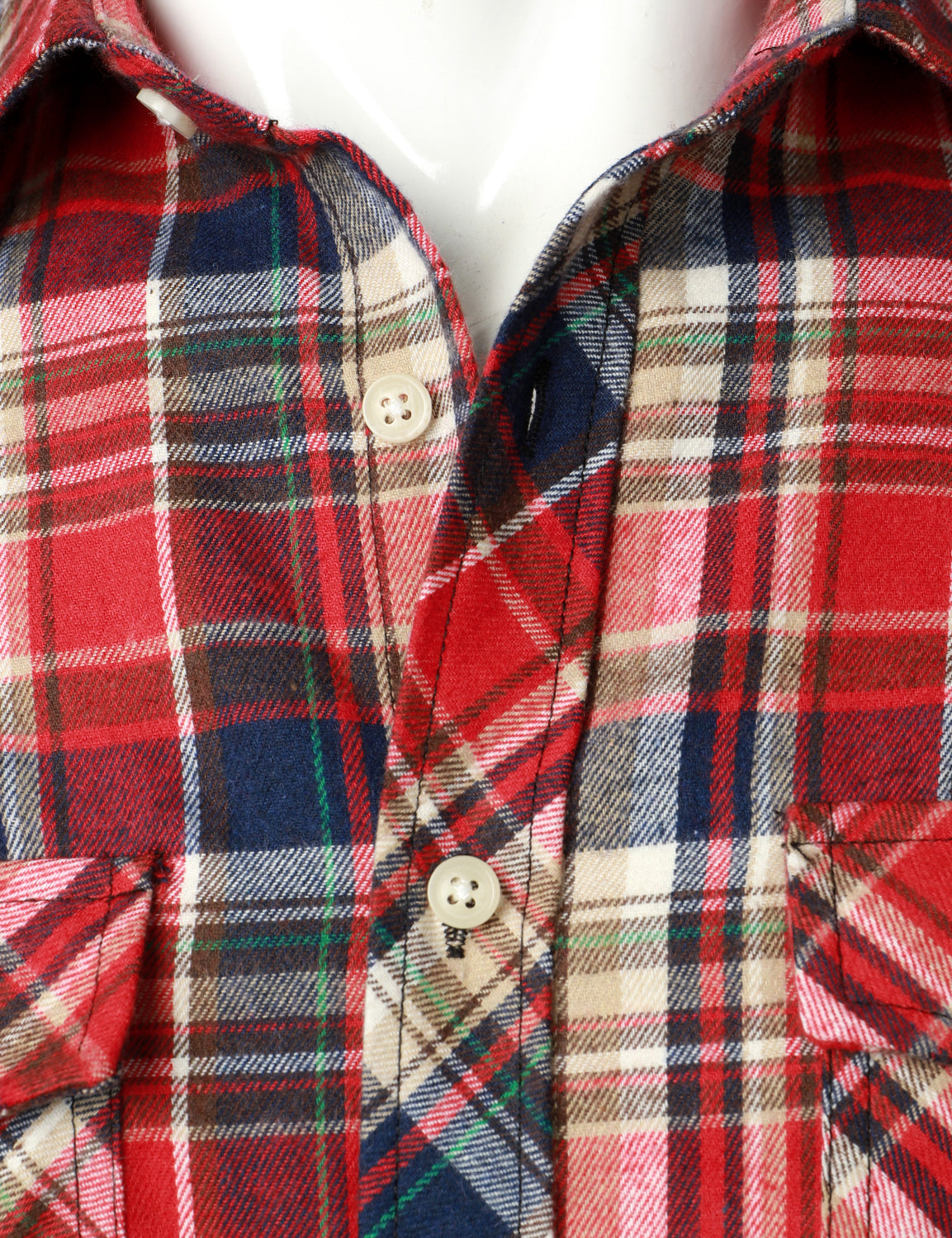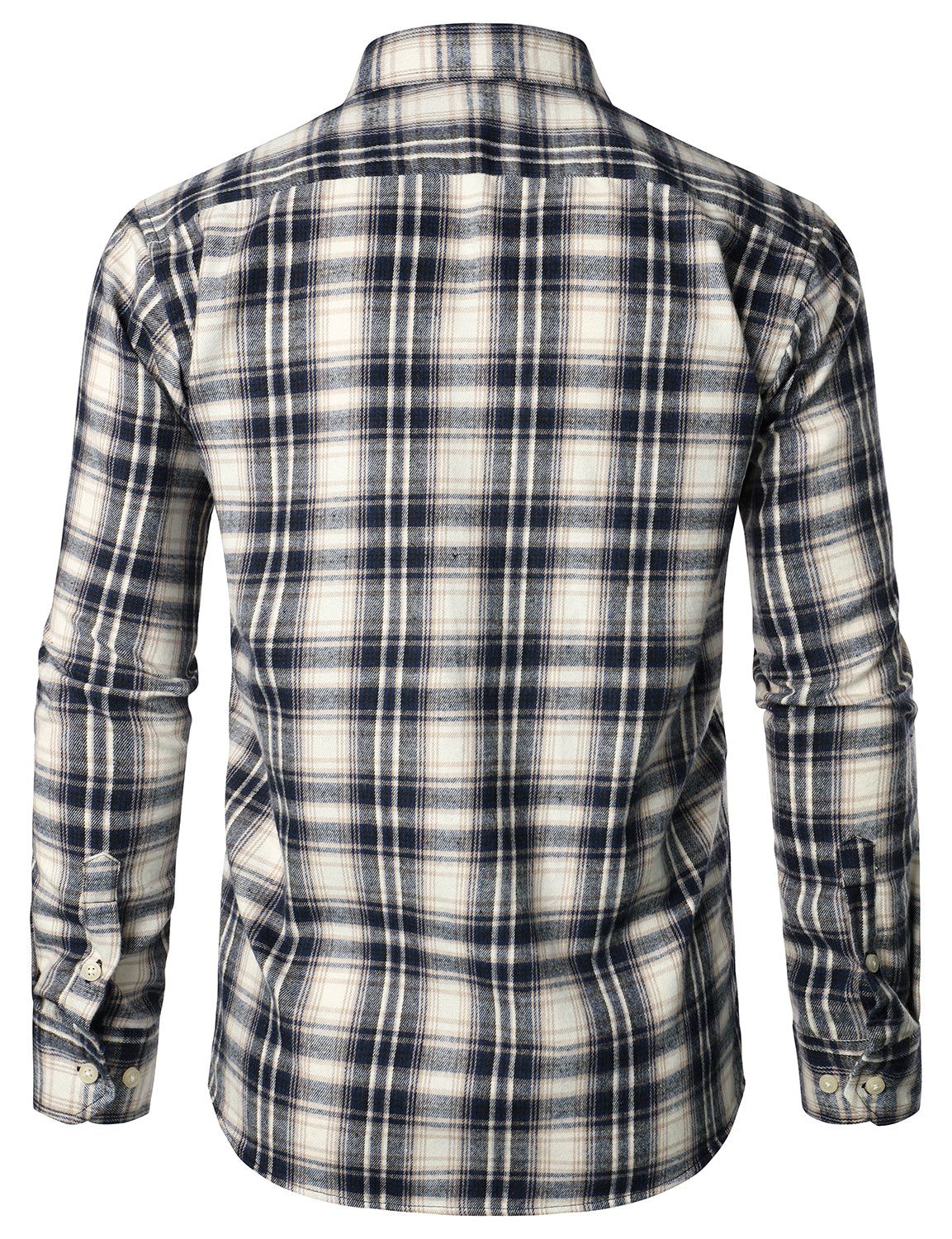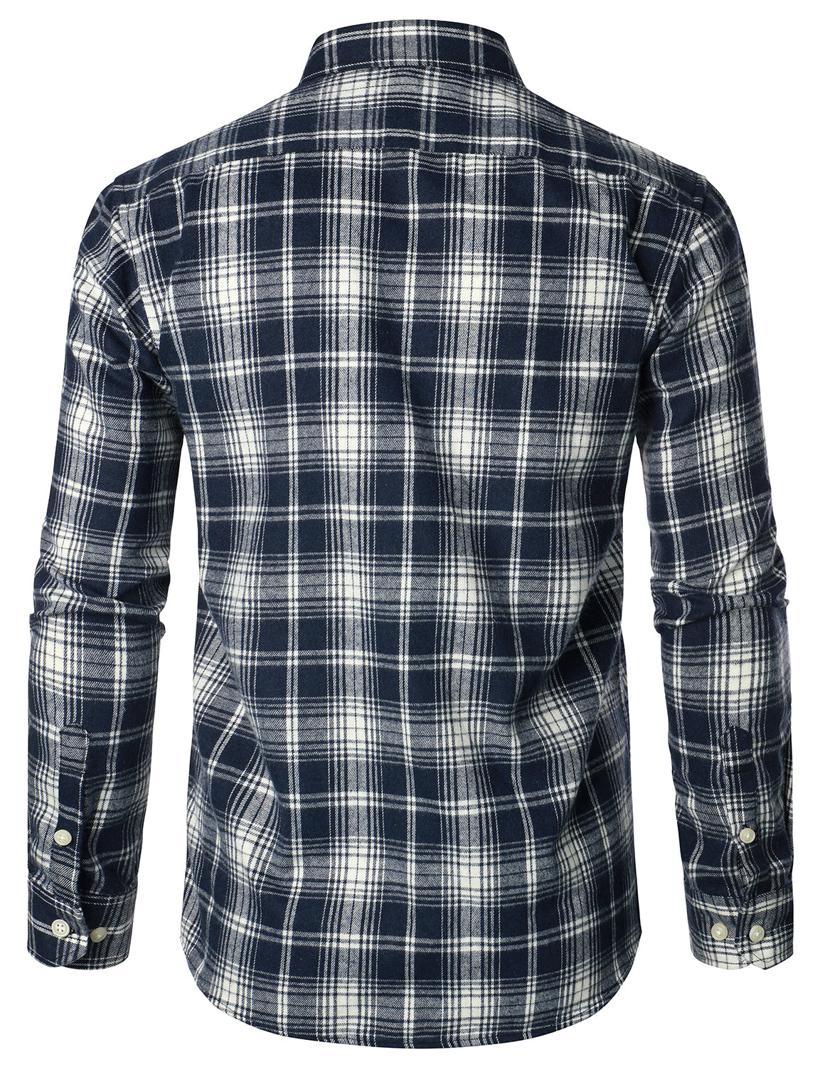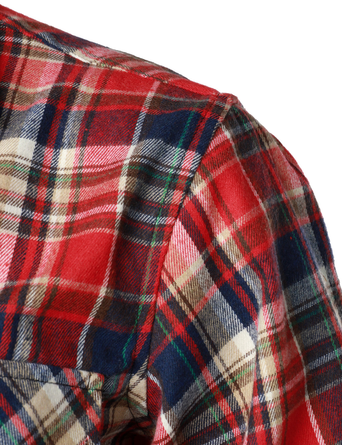 Men's Flannel Double Pocket Checkered Button Up Long Sleeve Casual Plaid Shirt
