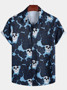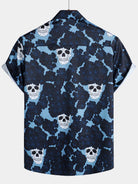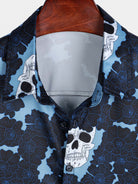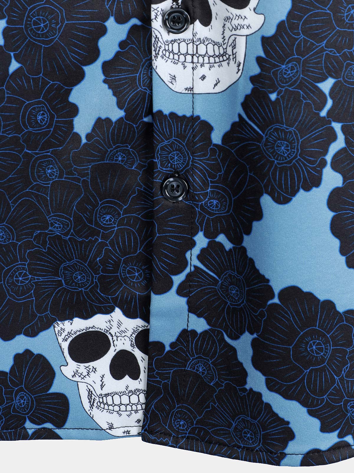 Men's Floral Print Cool Skull Casual Holiday Button Short Sleeve Shirt