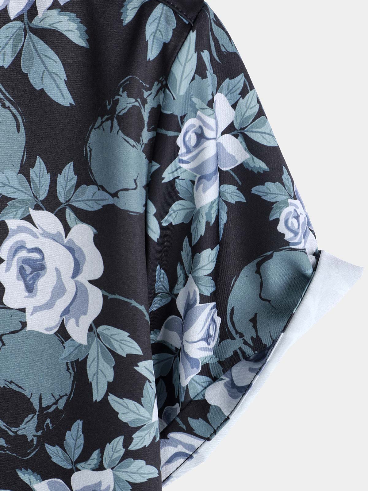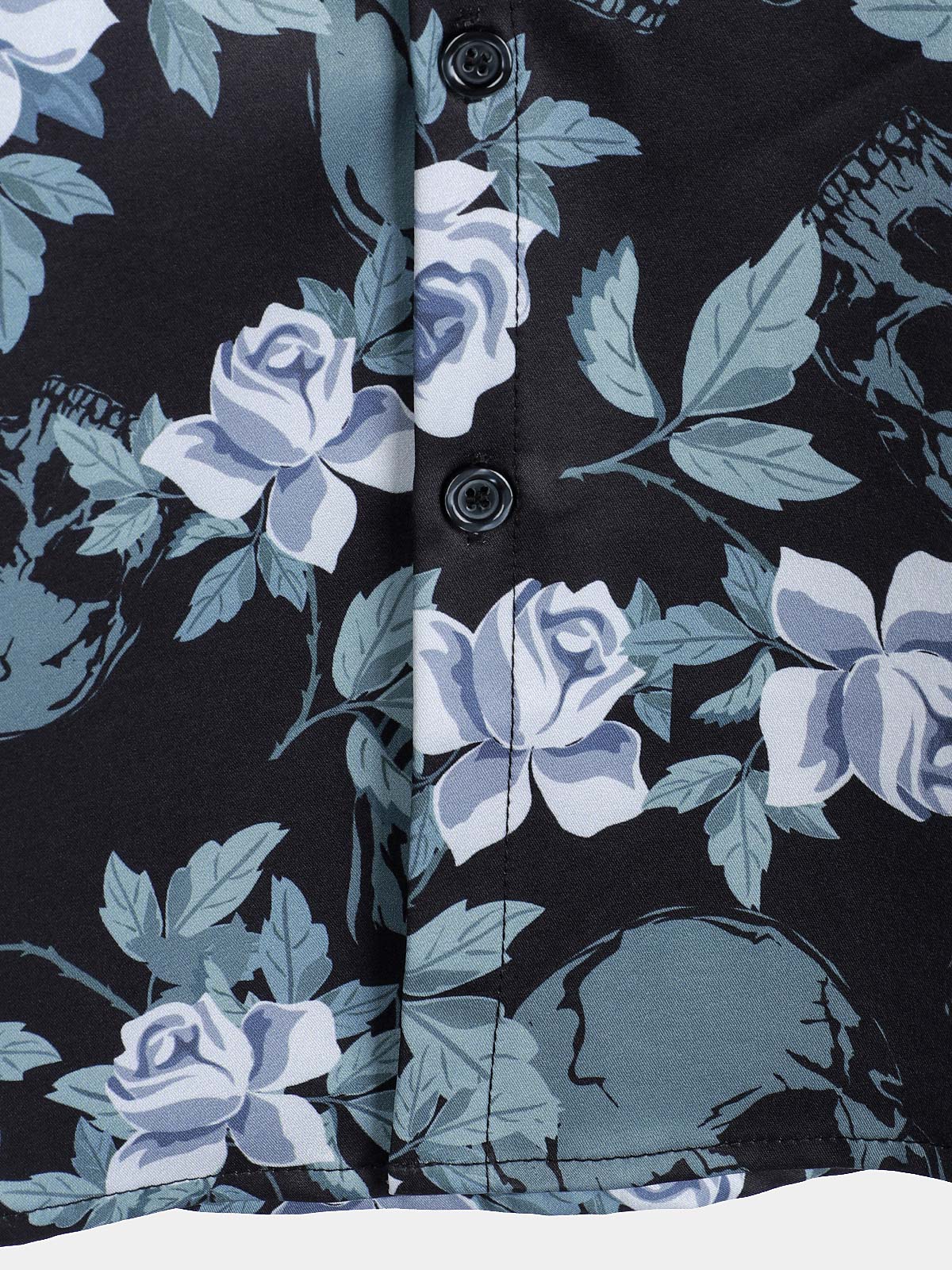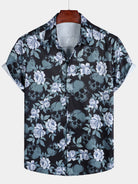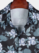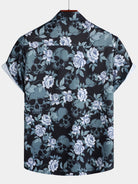 Men's Floral Print Cool Skull Vacation Button Short Sleeve Shirt