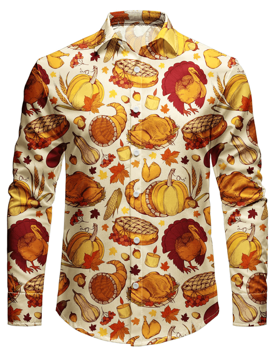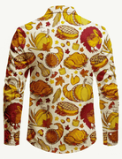 Men's Thanksgiving Turkey Pumpkin Autumn Maple Leaf Print Long Sleeve Shirt
