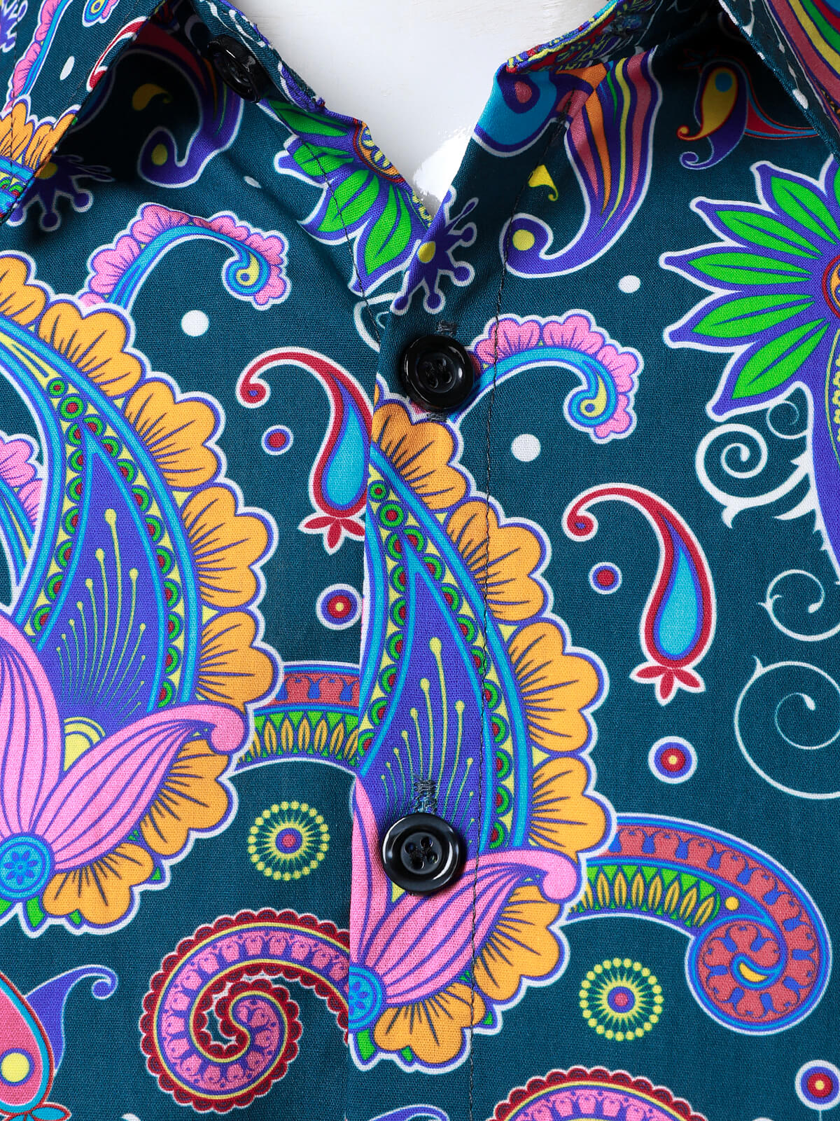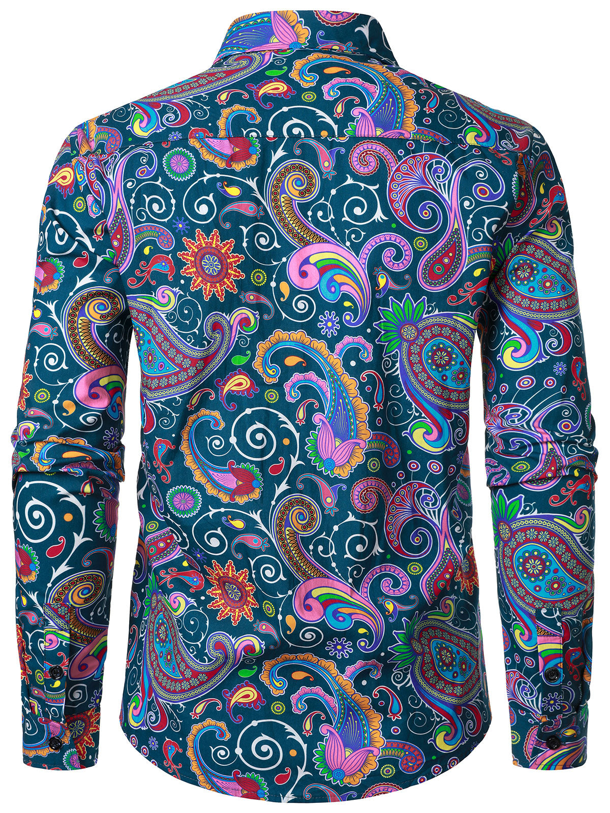 Men's Vintage 70s Paisley Print Cotton Disco Long Sleeve Shirt