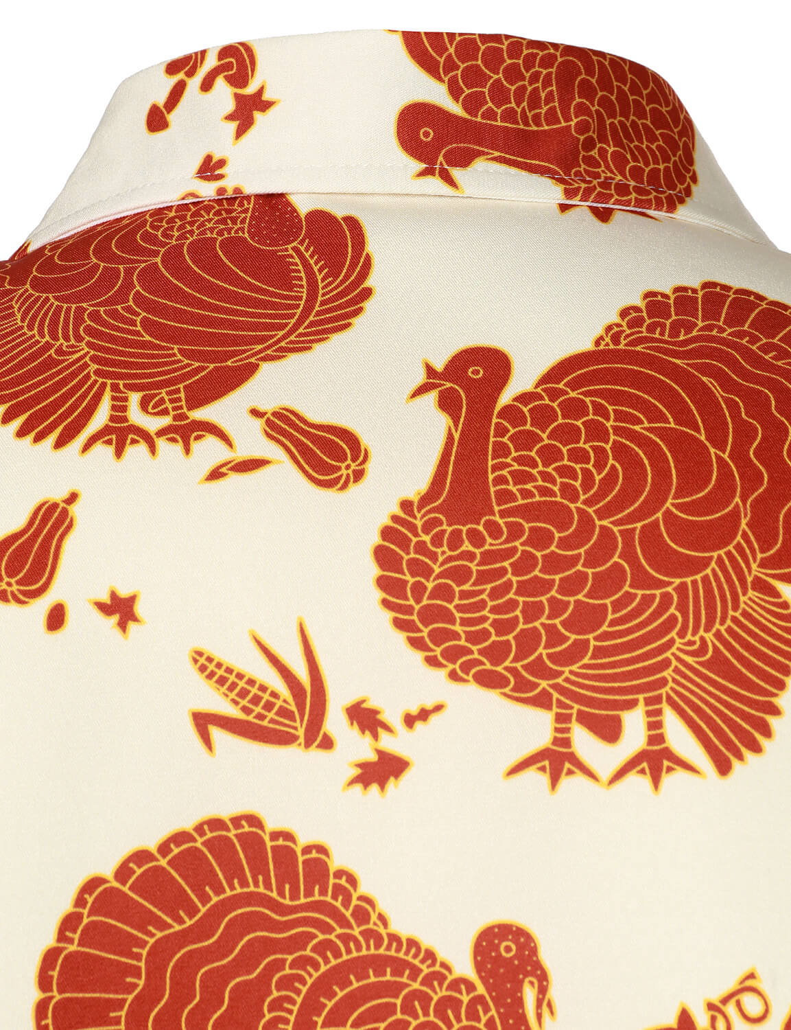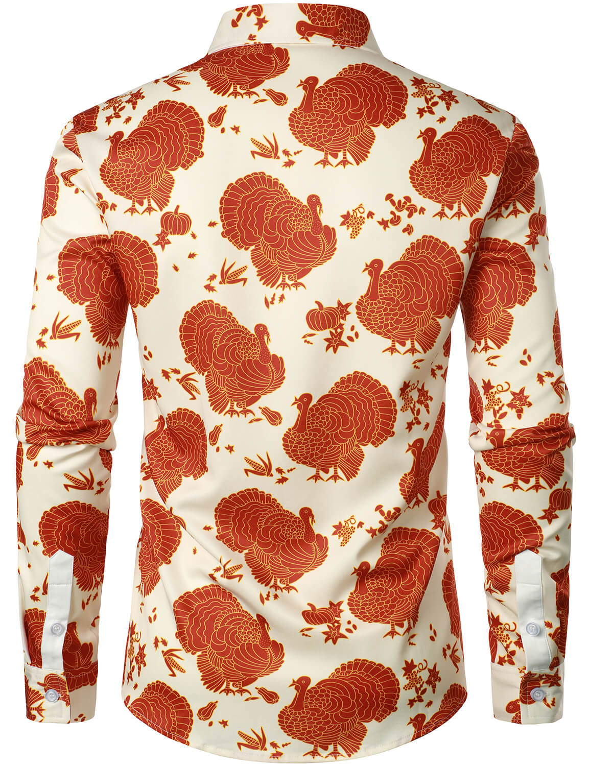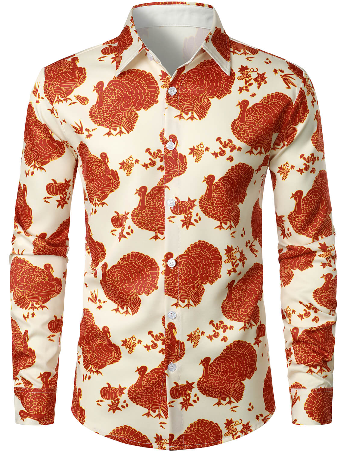 Men's Thanksgiving Funny Turkey Print Button Up Cute Animal Vacation Long Sleeve Shirt