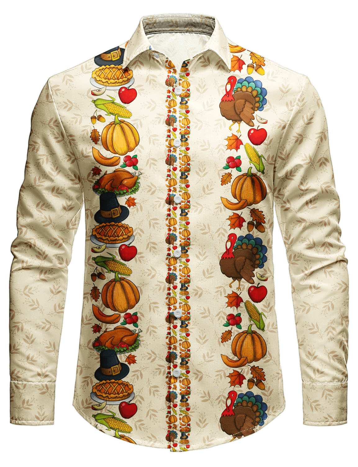 Men's Thanksgiving Turkey Day Fall Festival Gift Funny Holiday Button Long Sleeve Shirt