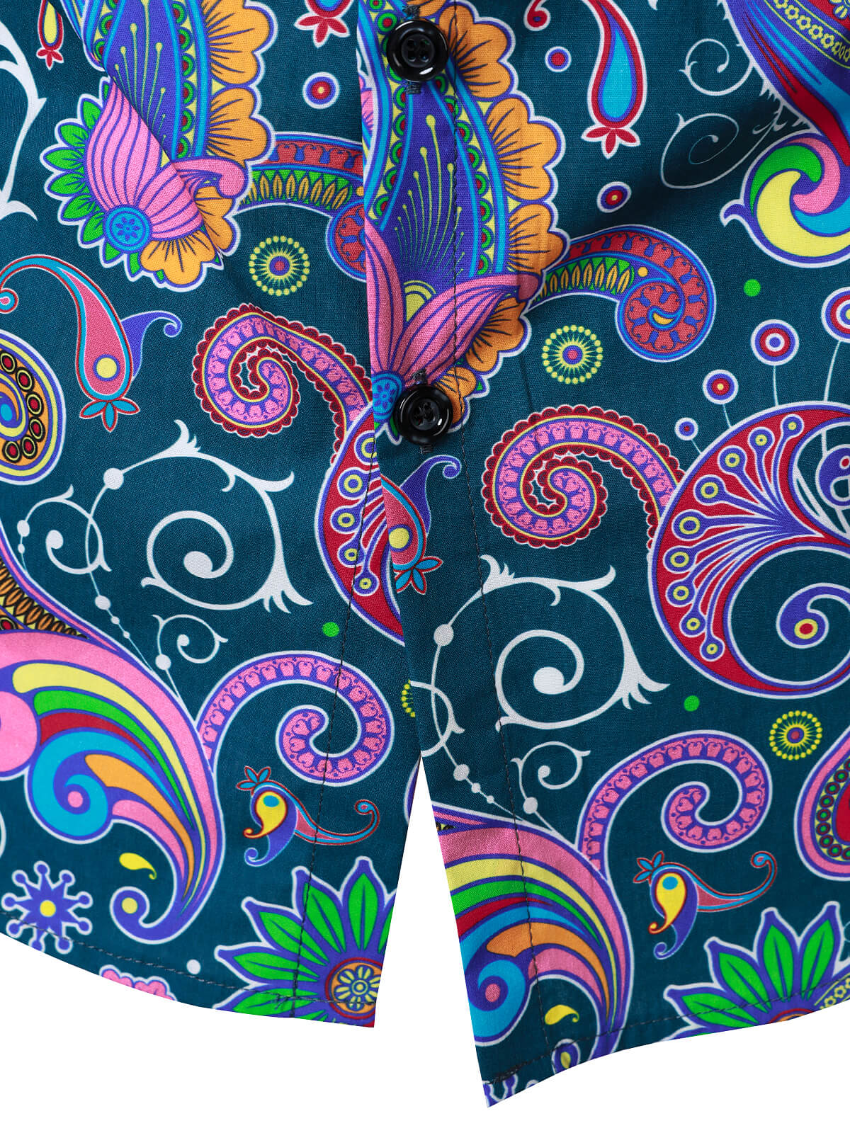 Men's Paisley Print Button Up Cotton Casual Long Sleeve Shirt