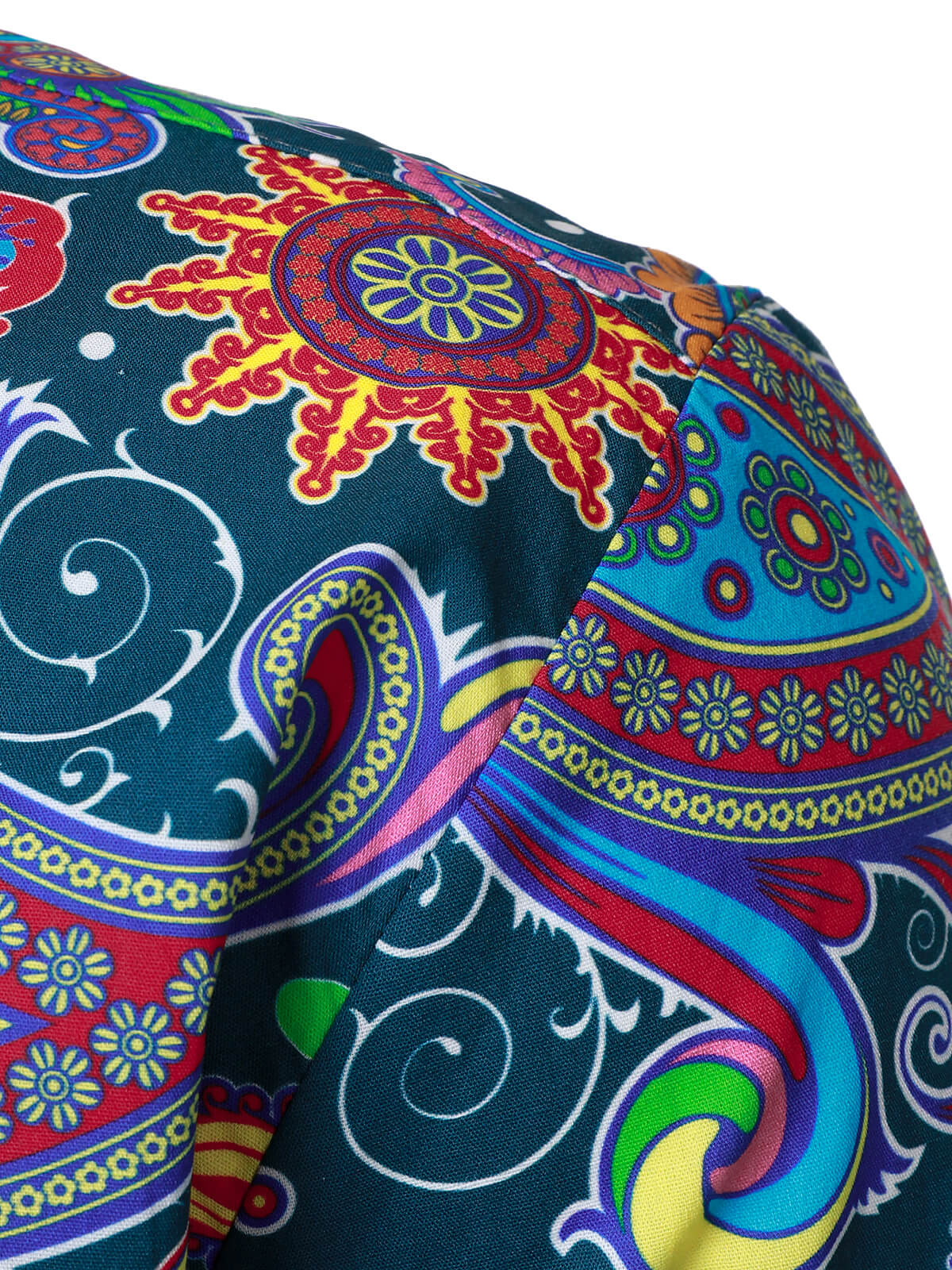 Men's Colorful Floral Cotton Party Disco Button Up Long Sleeve Shirt