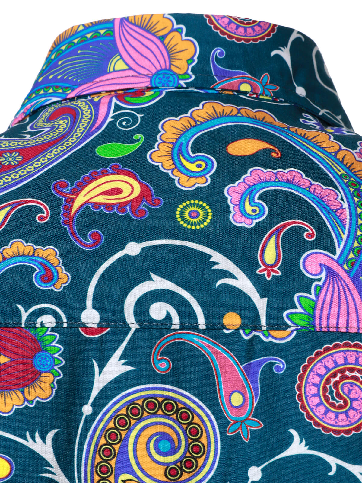 Men's Vintage 70s Paisley Print Cotton Disco Long Sleeve Shirt
