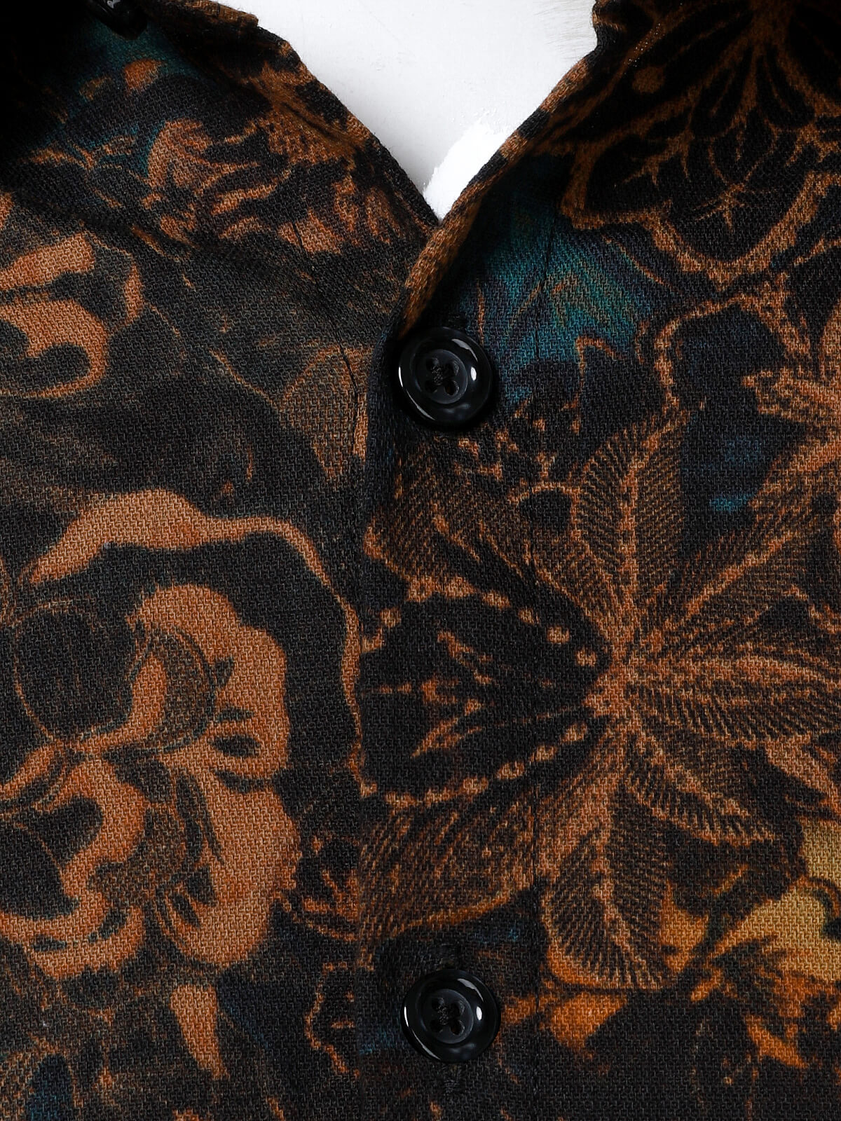 Men's Floral Print Vintage Holiday Brown Hawaiian Short Sleeve Shirt