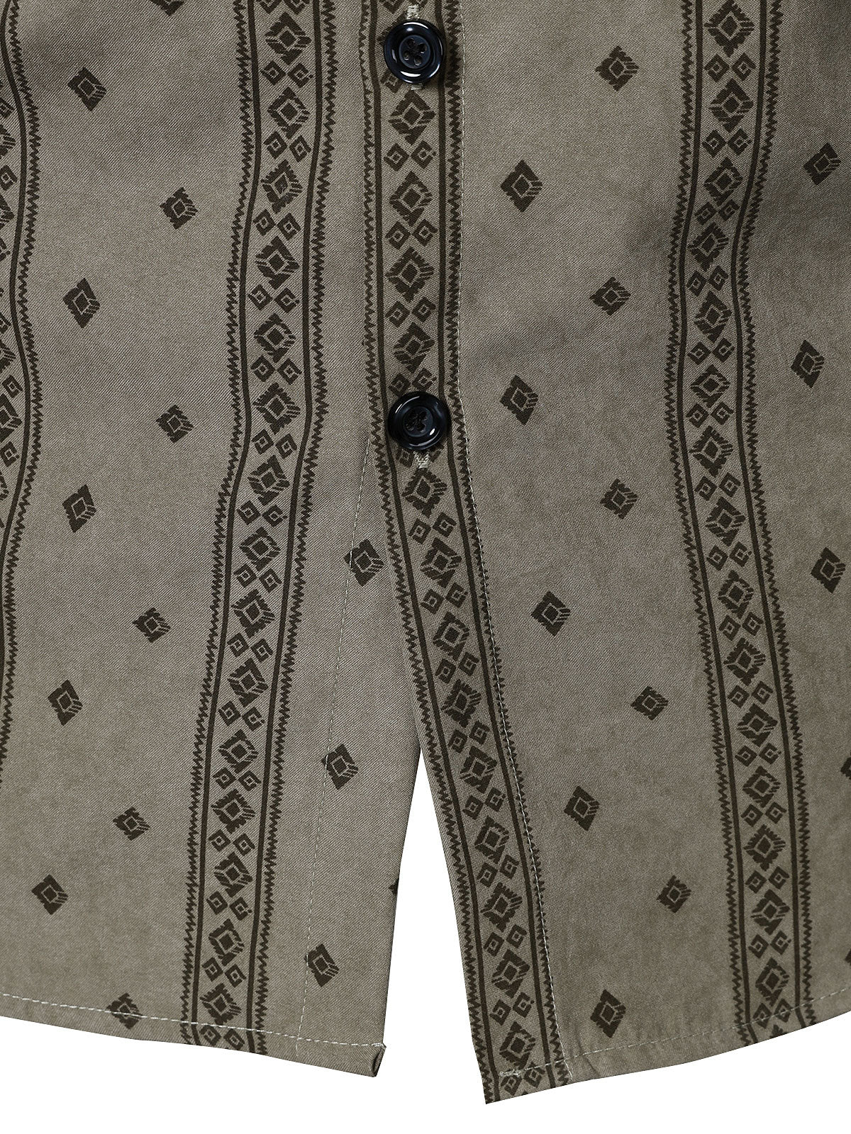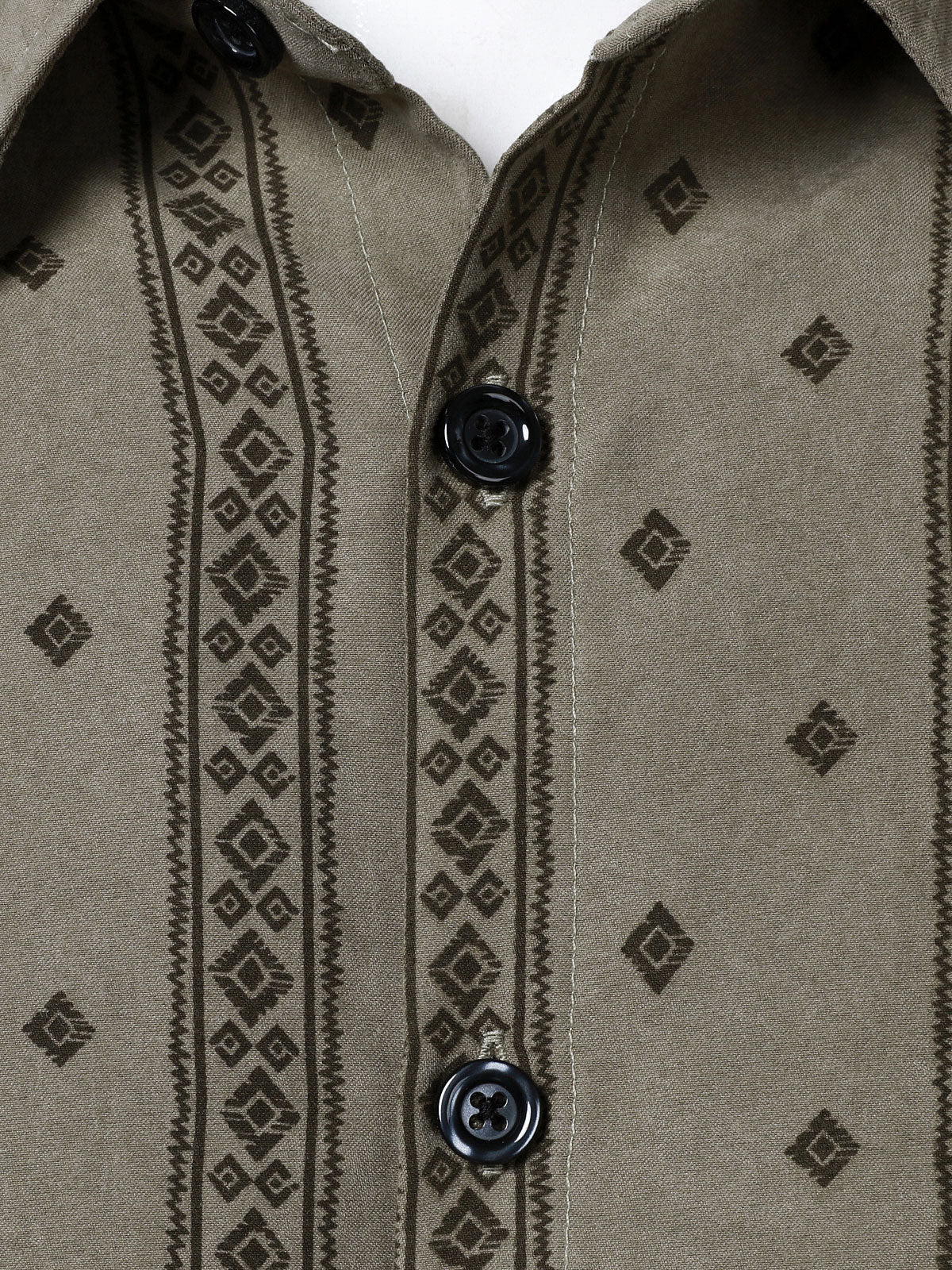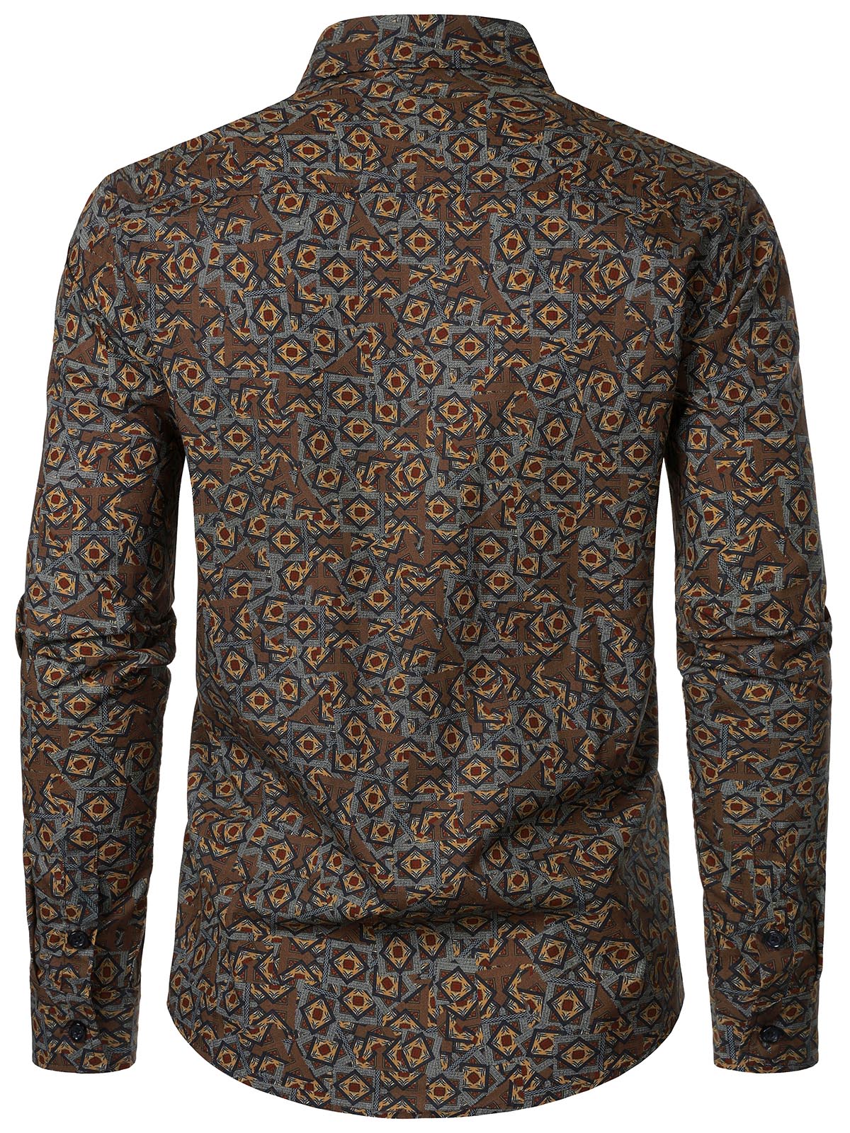 Men's Cotton Vintage Circle Print Long Sleeve Button Up Shirt