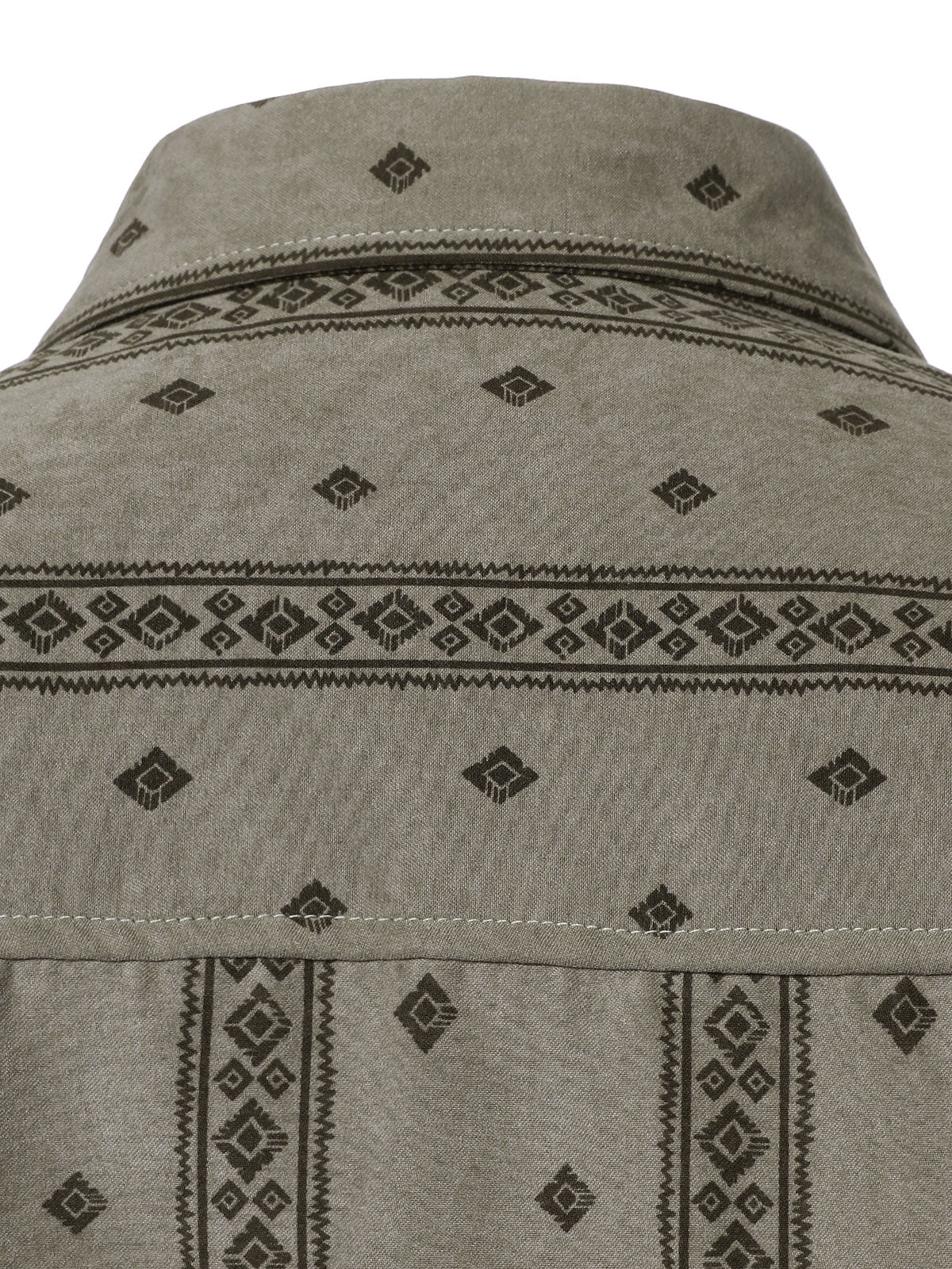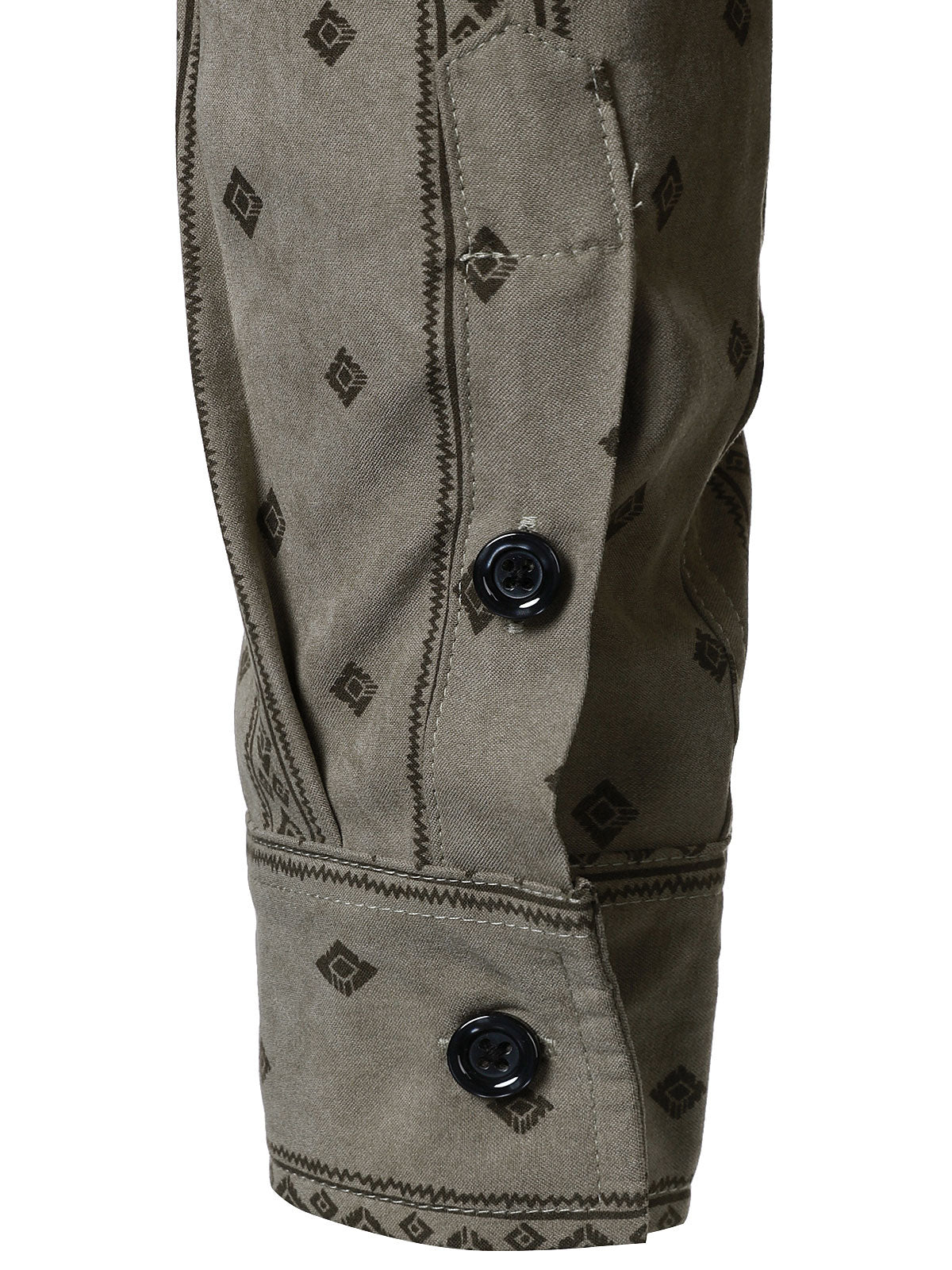 Men's Vintage Print Green Long Sleeve Dress Shirt