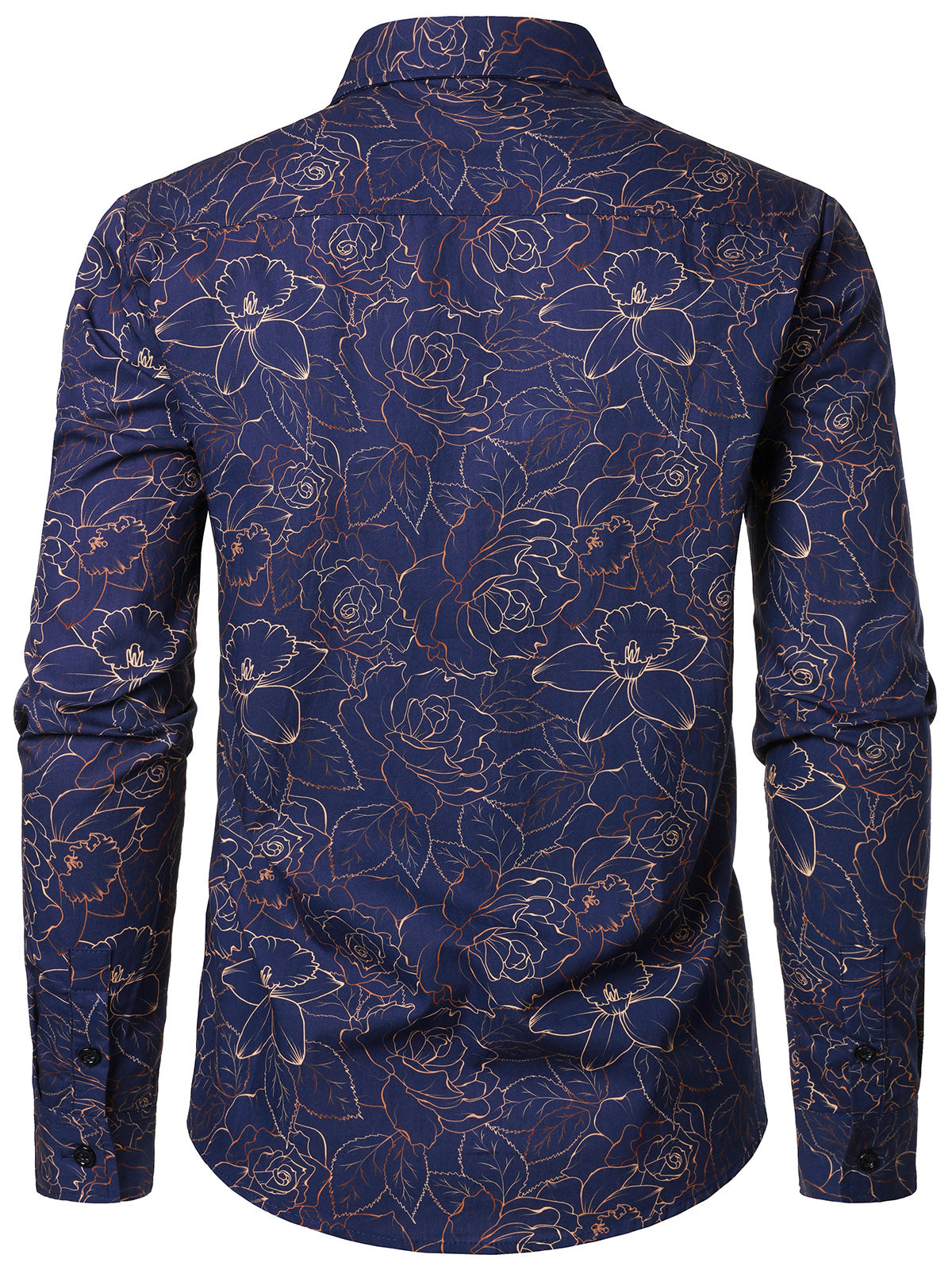 Men's Cotton Floral Disco Party Button Up Long Sleeve Shirt