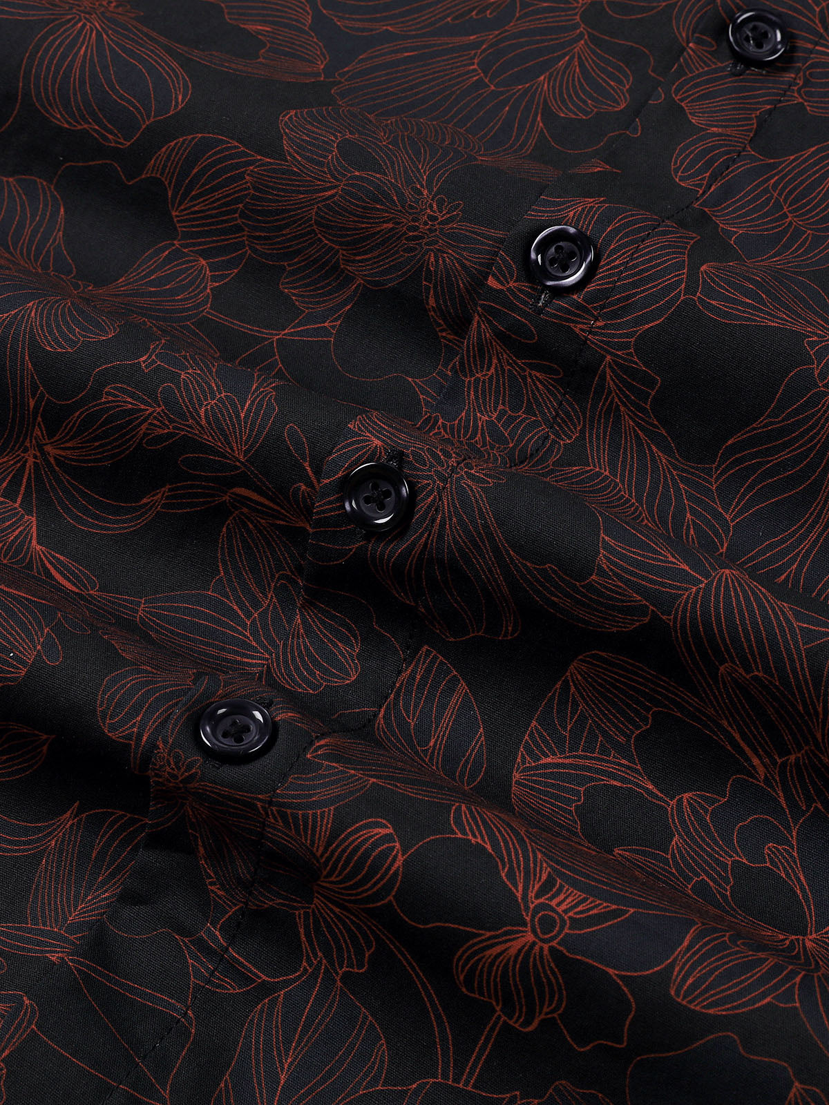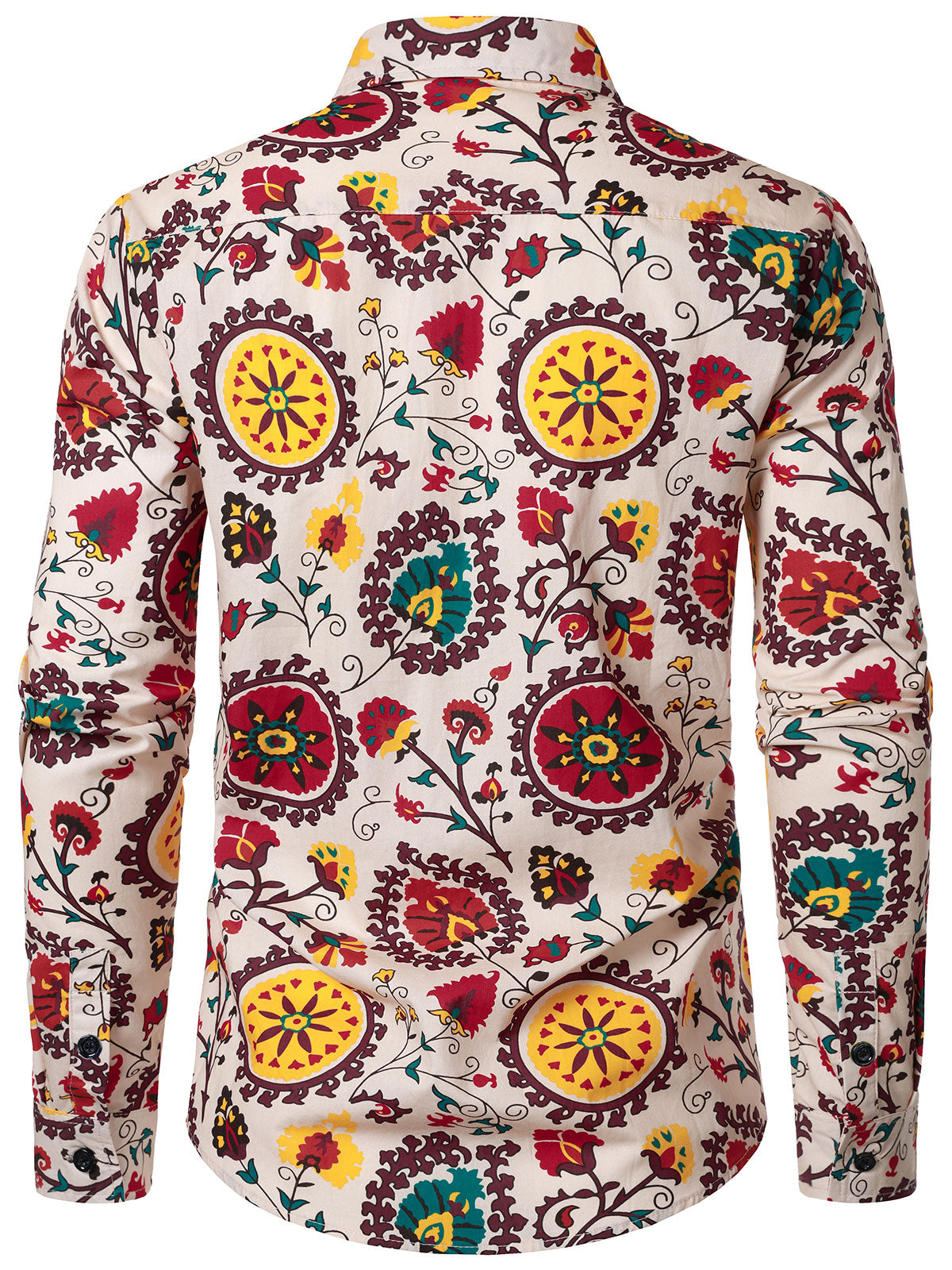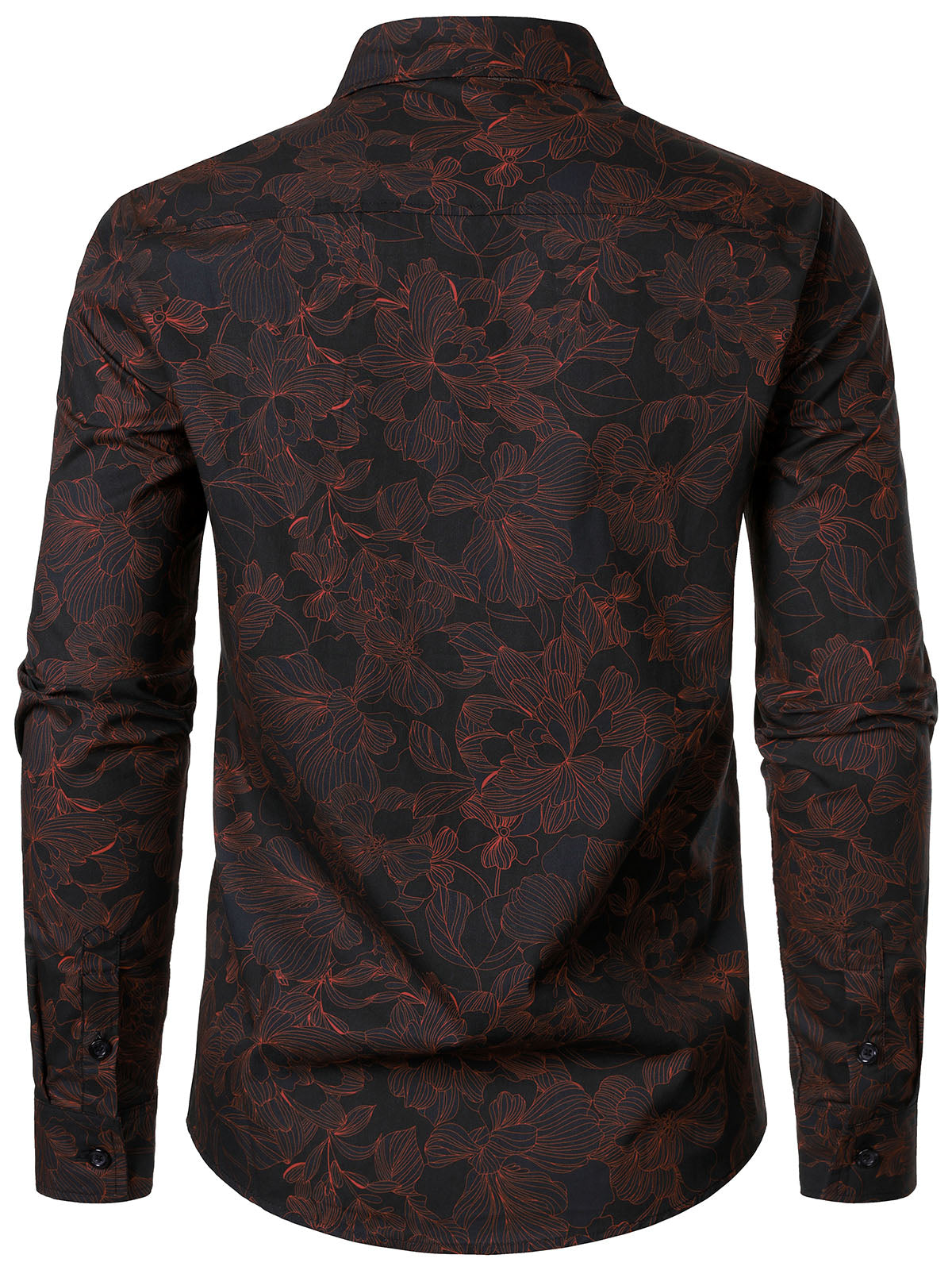 Men's 70s Floral Print Breathable Cotton Brown Long Sleeve Shirt