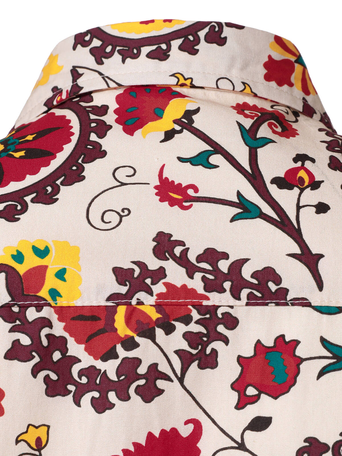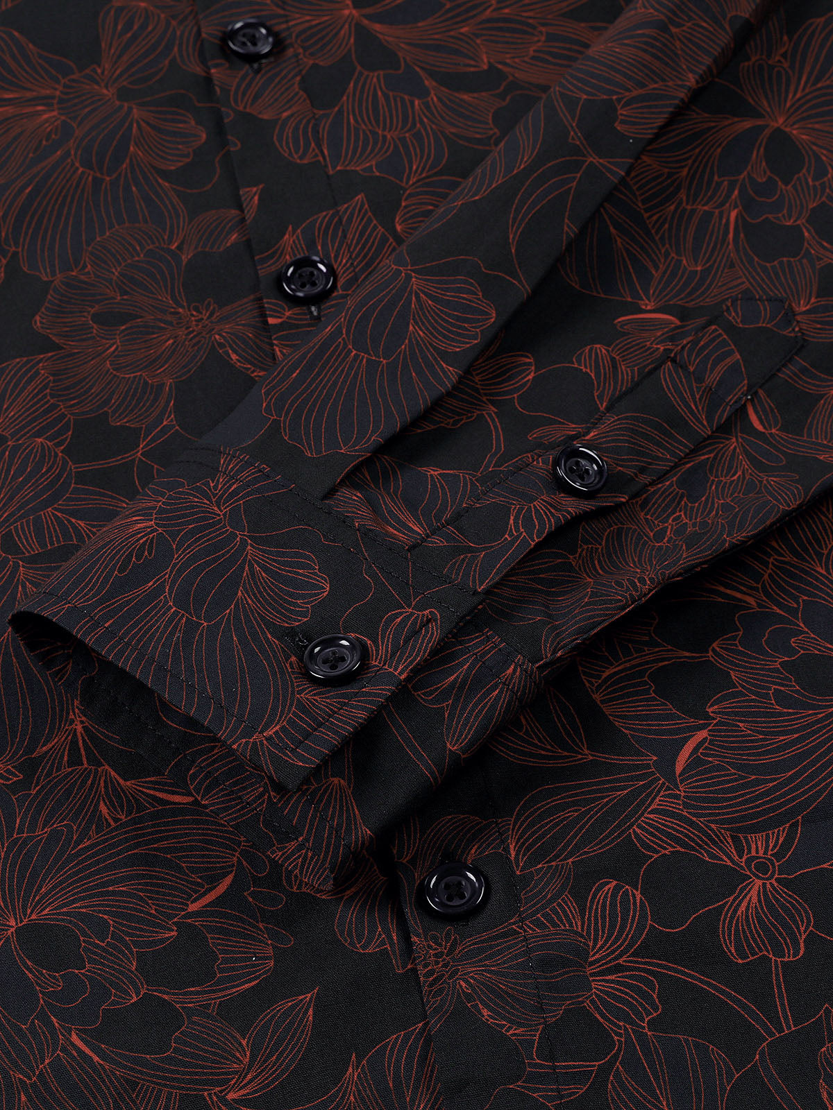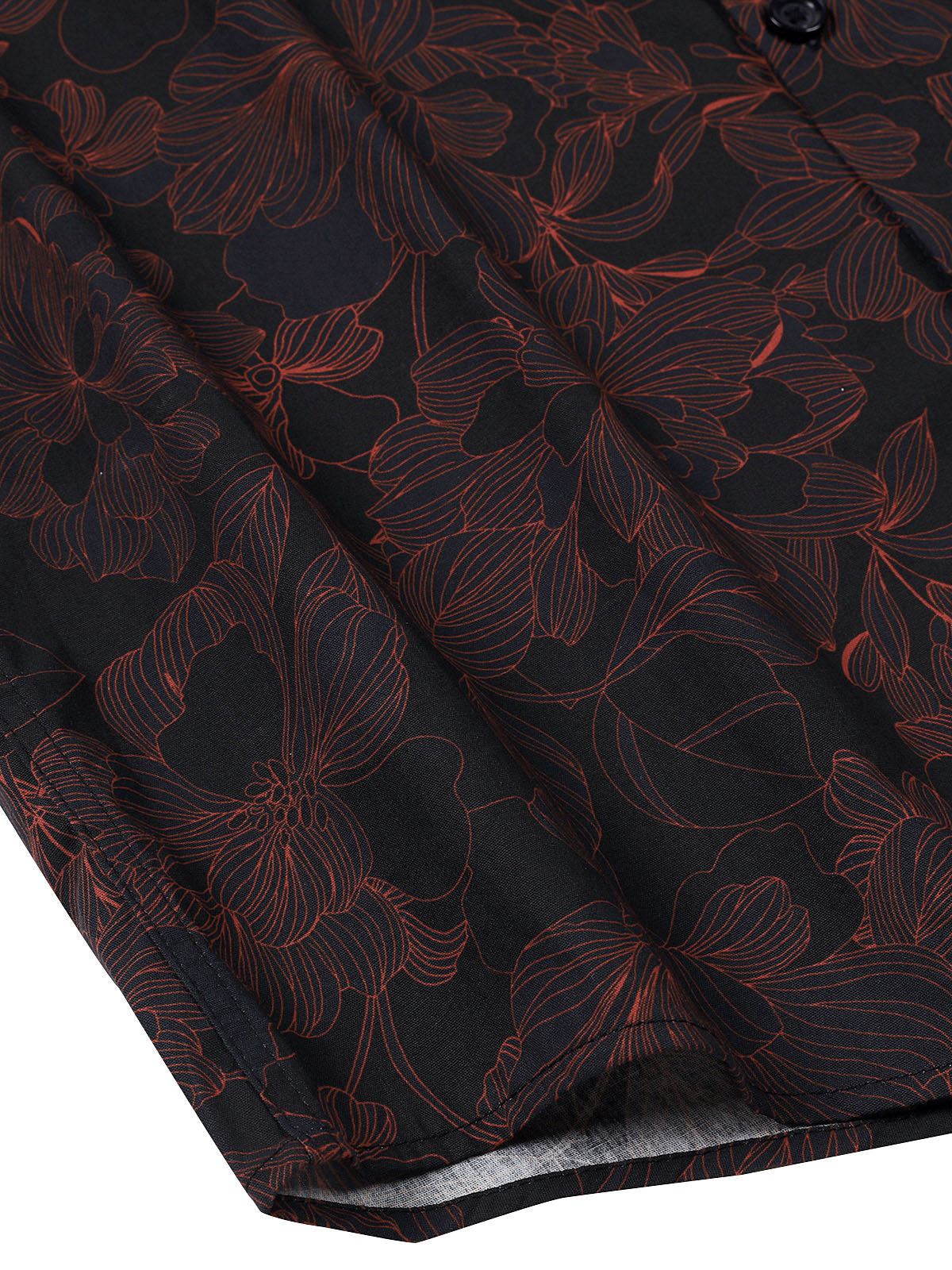 Men's 70s Breathable Cotton Floral Print Red Long Sleeve Shirt