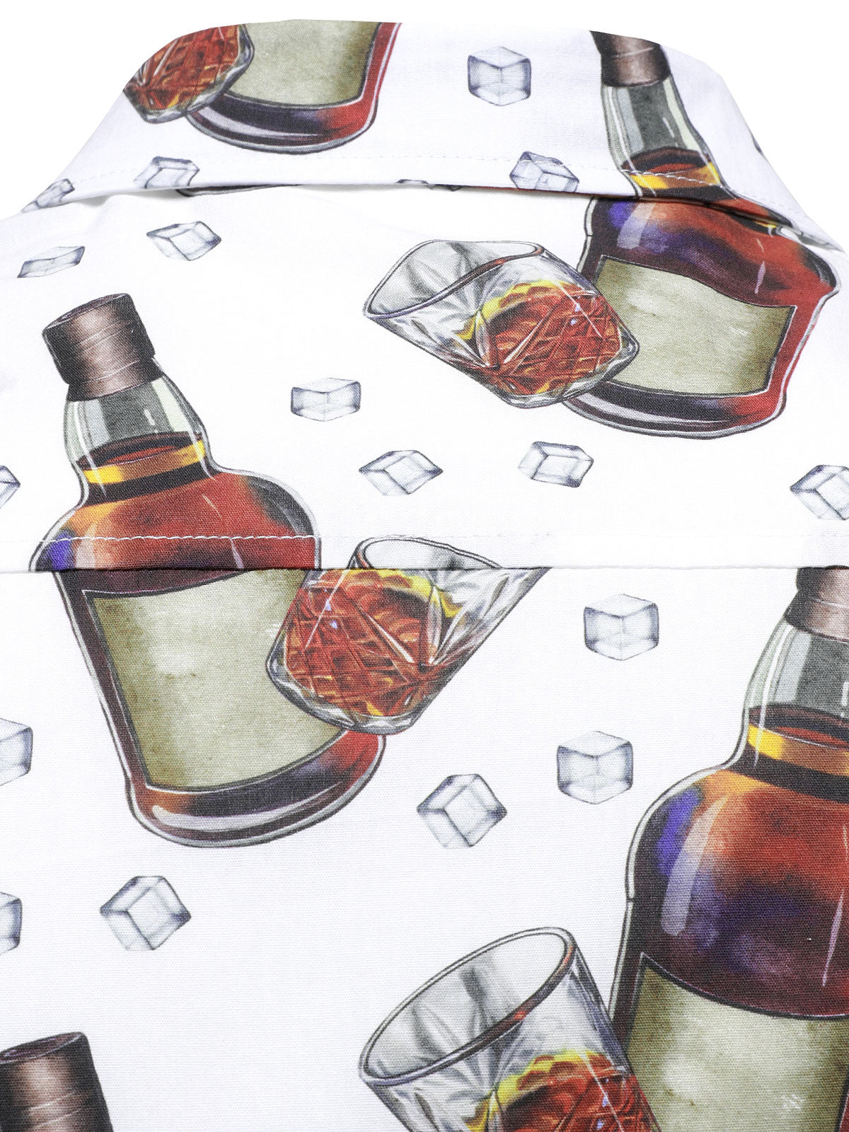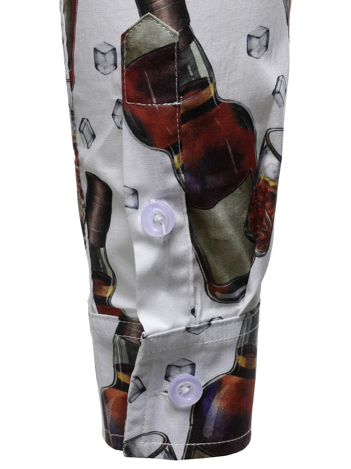 Men's Whiskey & Ice Cube Print Casual Long Sleeve Cotton Holiday Party Shirt