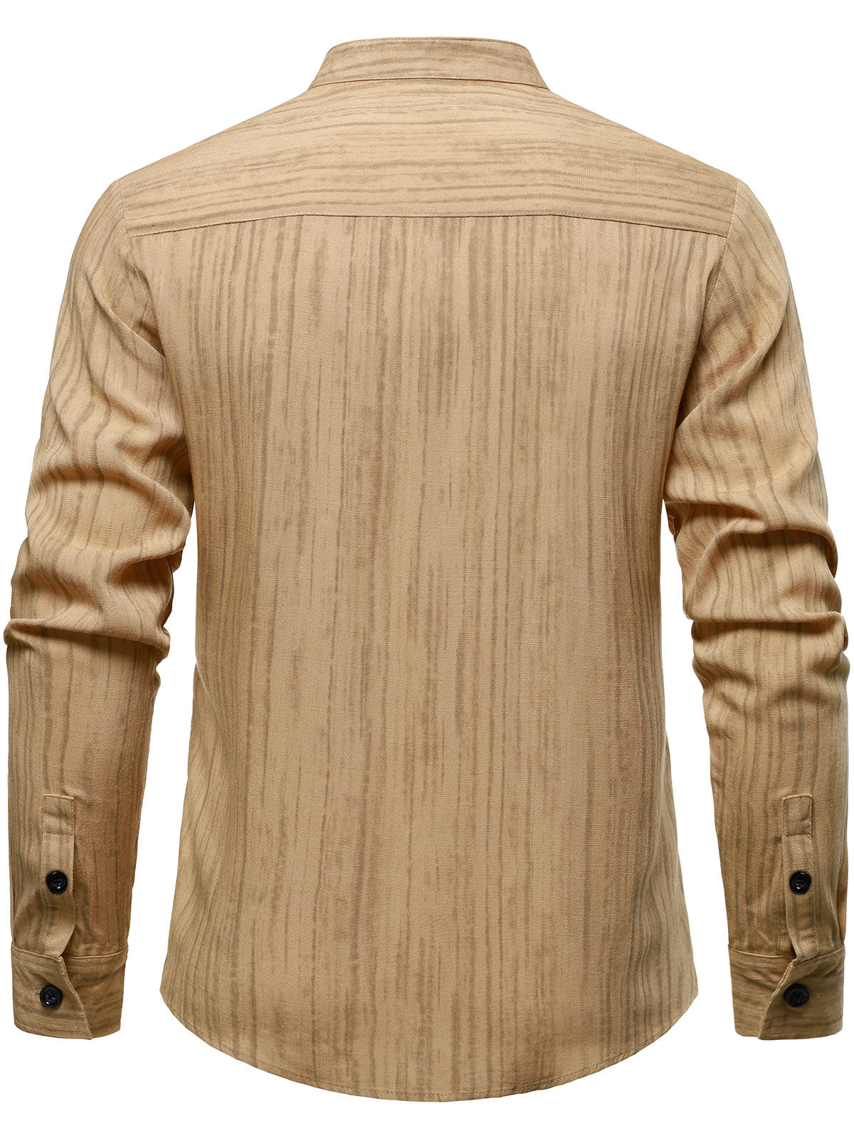 Men's Casual Breathable Pocket Long Sleeve Khaki Striped Shirt