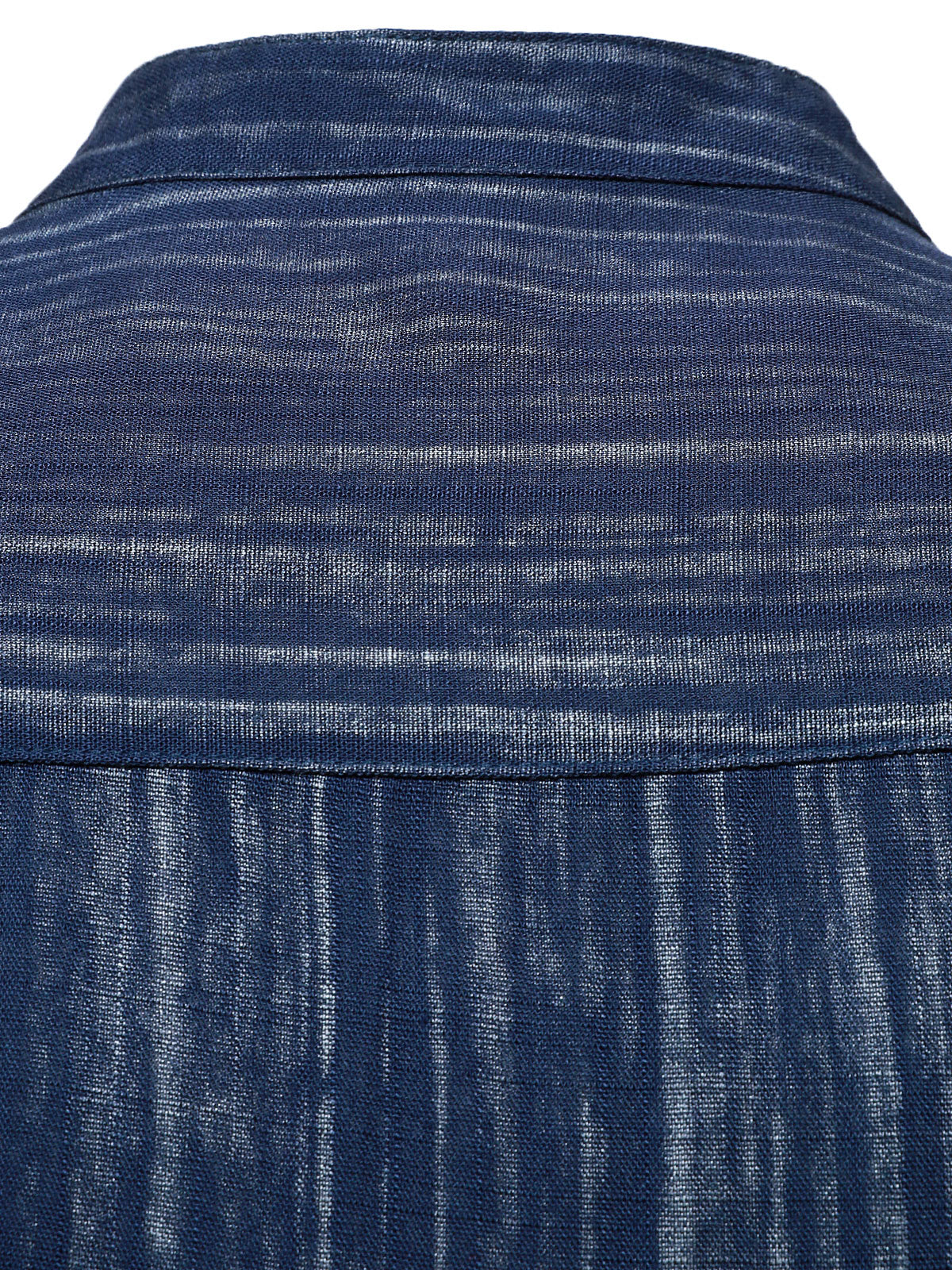 Men's Casual Breathable Pocket Long Sleeve Blue Striped Shirt