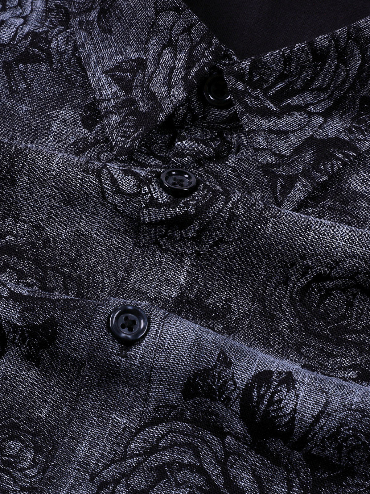 Men's Breathable Cotton 70s Floral Print Navy Blue Long Sleeve Shirt