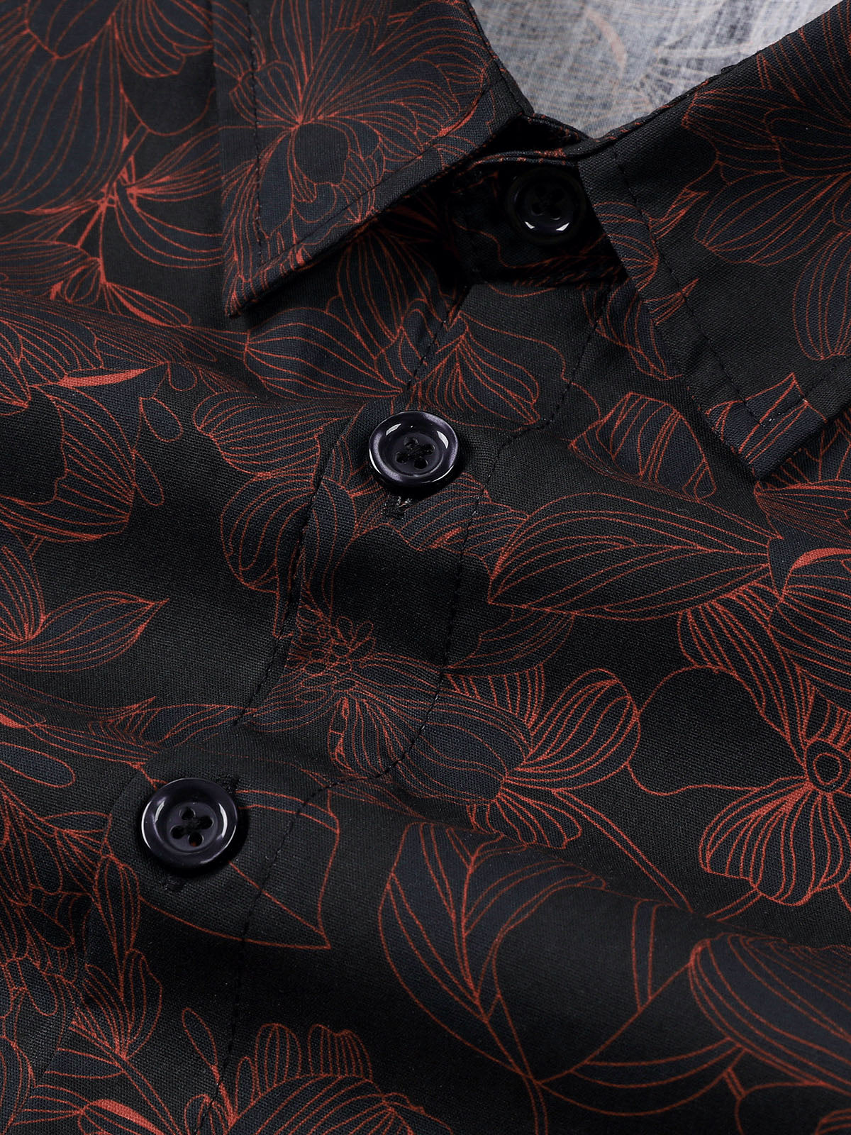 Men's Floral Print Vintage Holiday Brown Hawaiian Short Sleeve Shirt