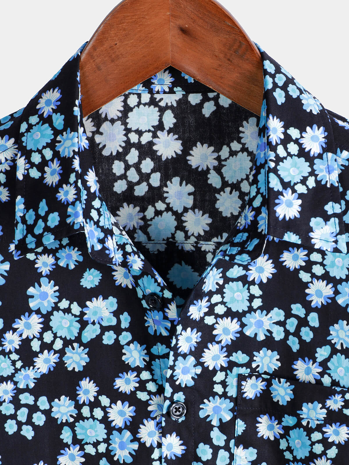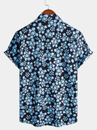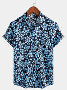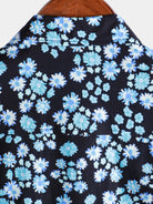Men's Blue Floral Breathable Cotton Hawaiian Tropical Beach Vacation Resort Shirt