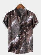 Men's Brown Abstract Art Vacation Short Sleeve Shirt