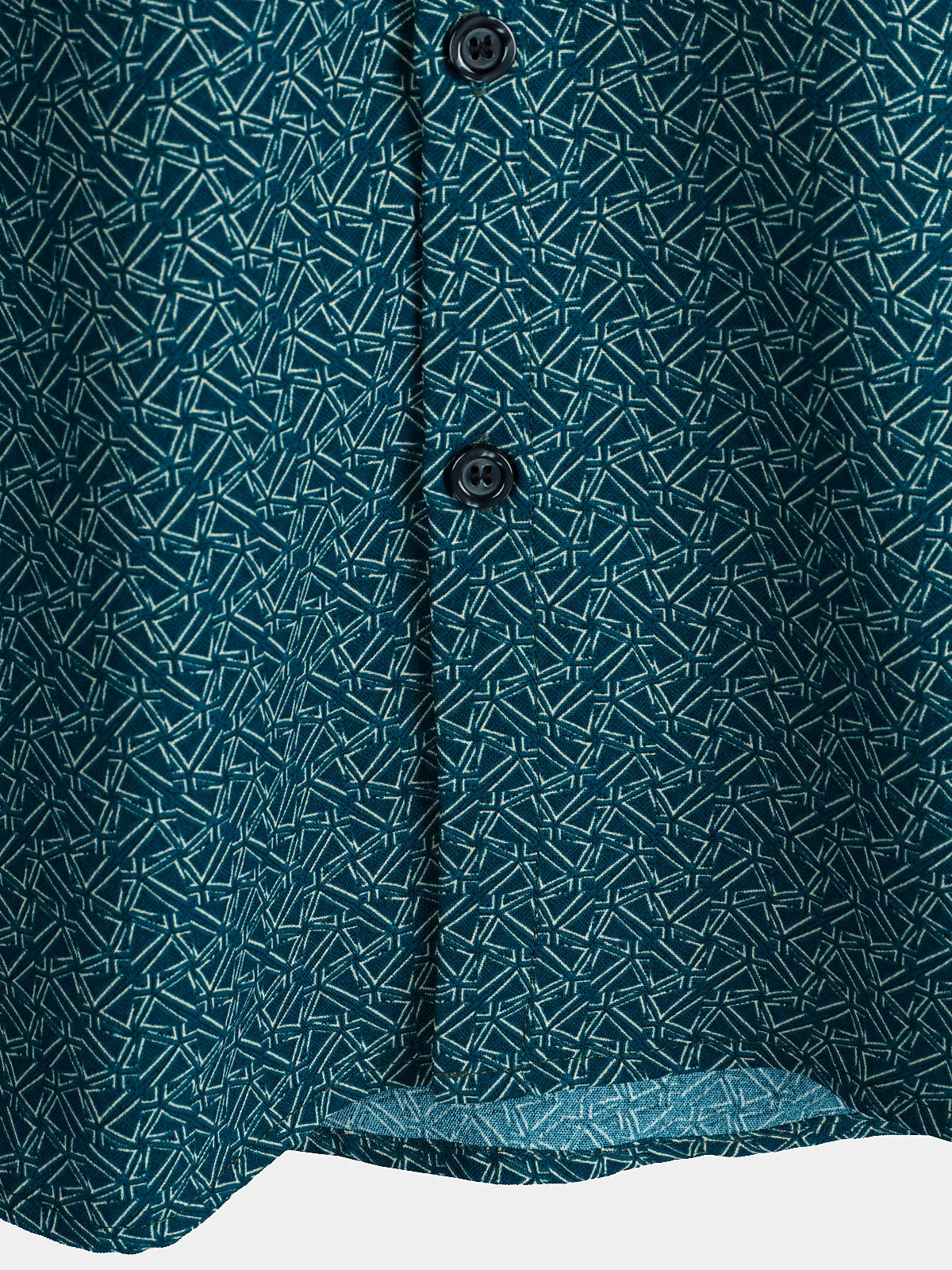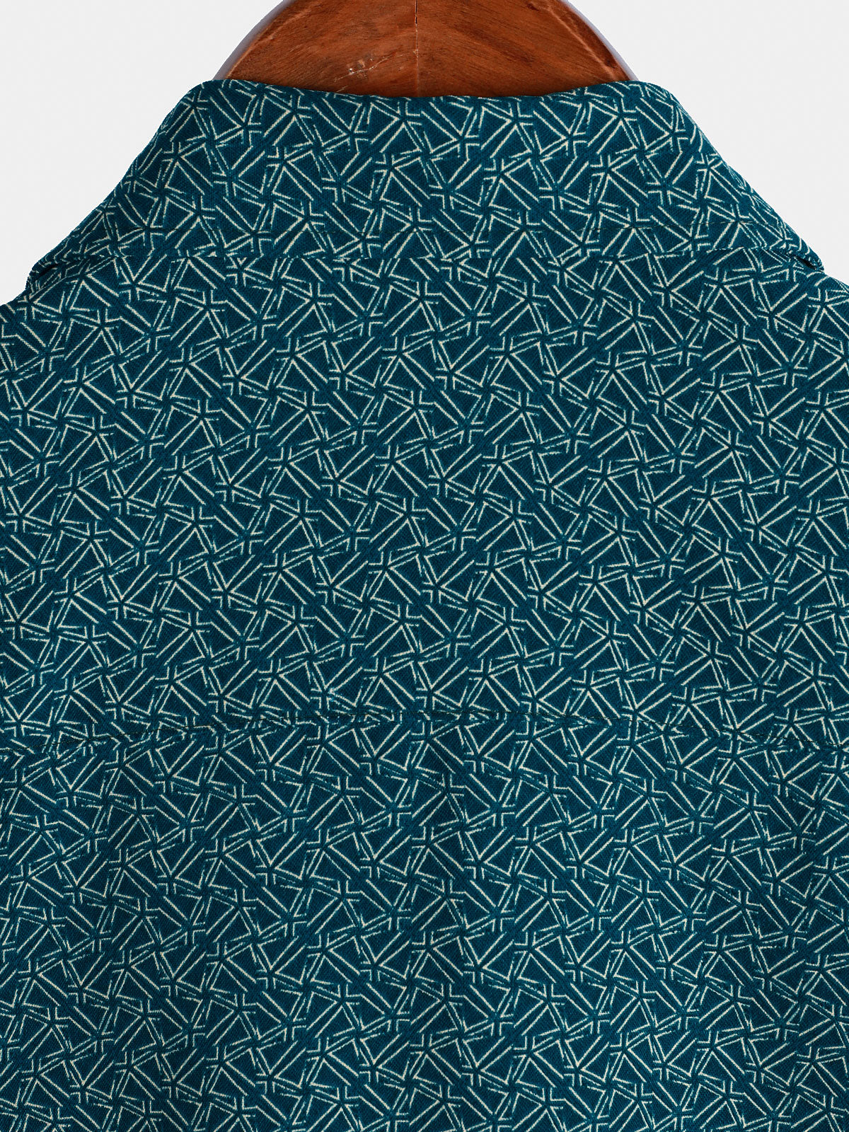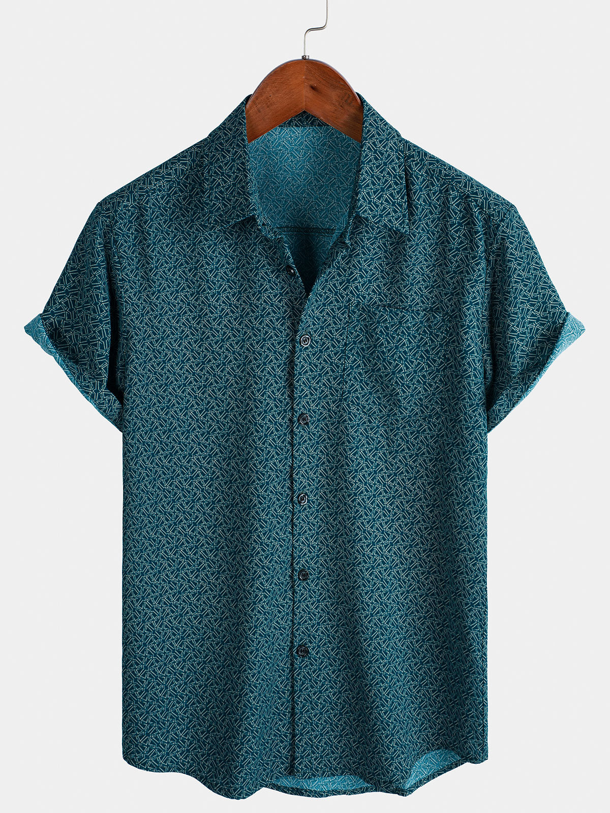Men's Casual Geometric Print Holiday Pocket Short Sleeve Shirt