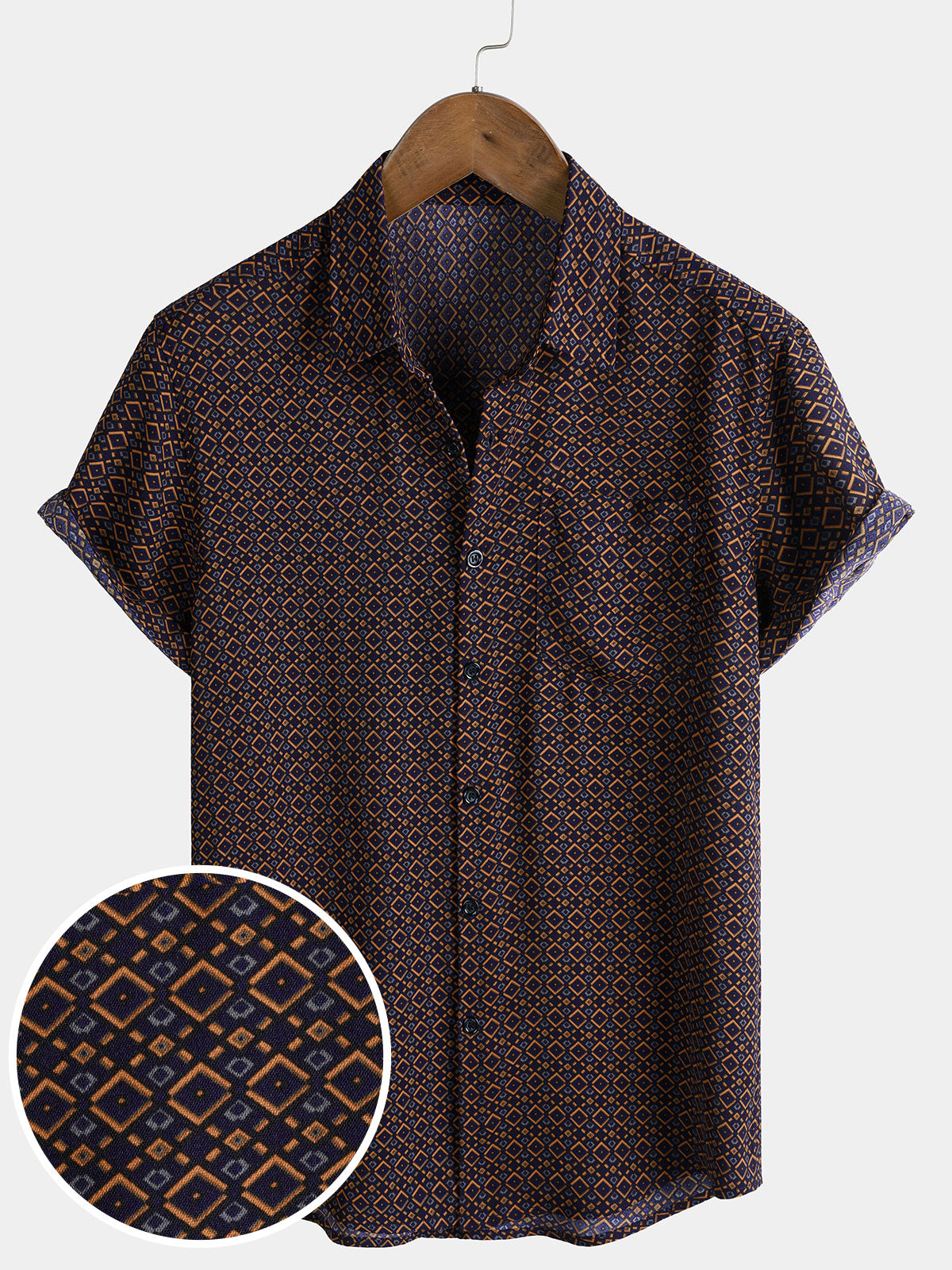 Men's Geometric Print Bohemian Casual Short Sleeve Shirt