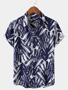Men's Navy Blue Abstract Geometric Print Short Sleeve Shirt