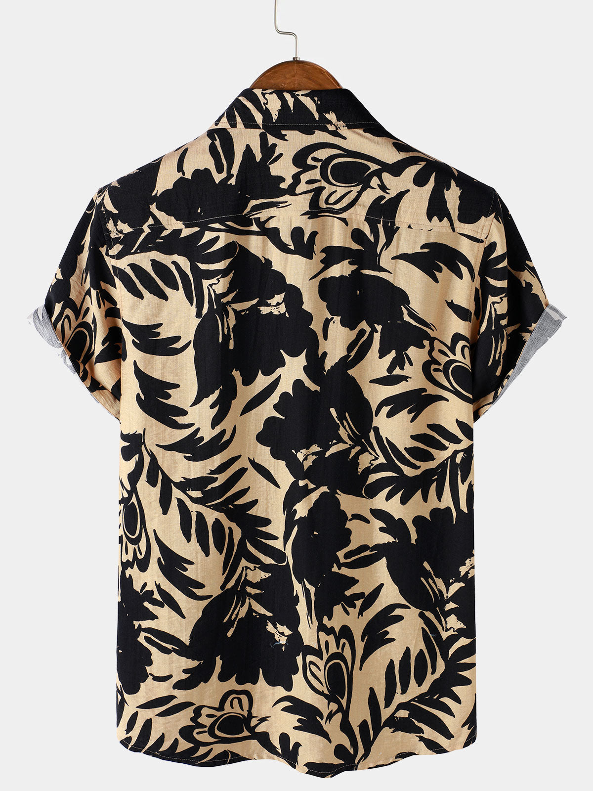 Men's Retro Abstract Botanical Button Up Short Sleeve Shirt