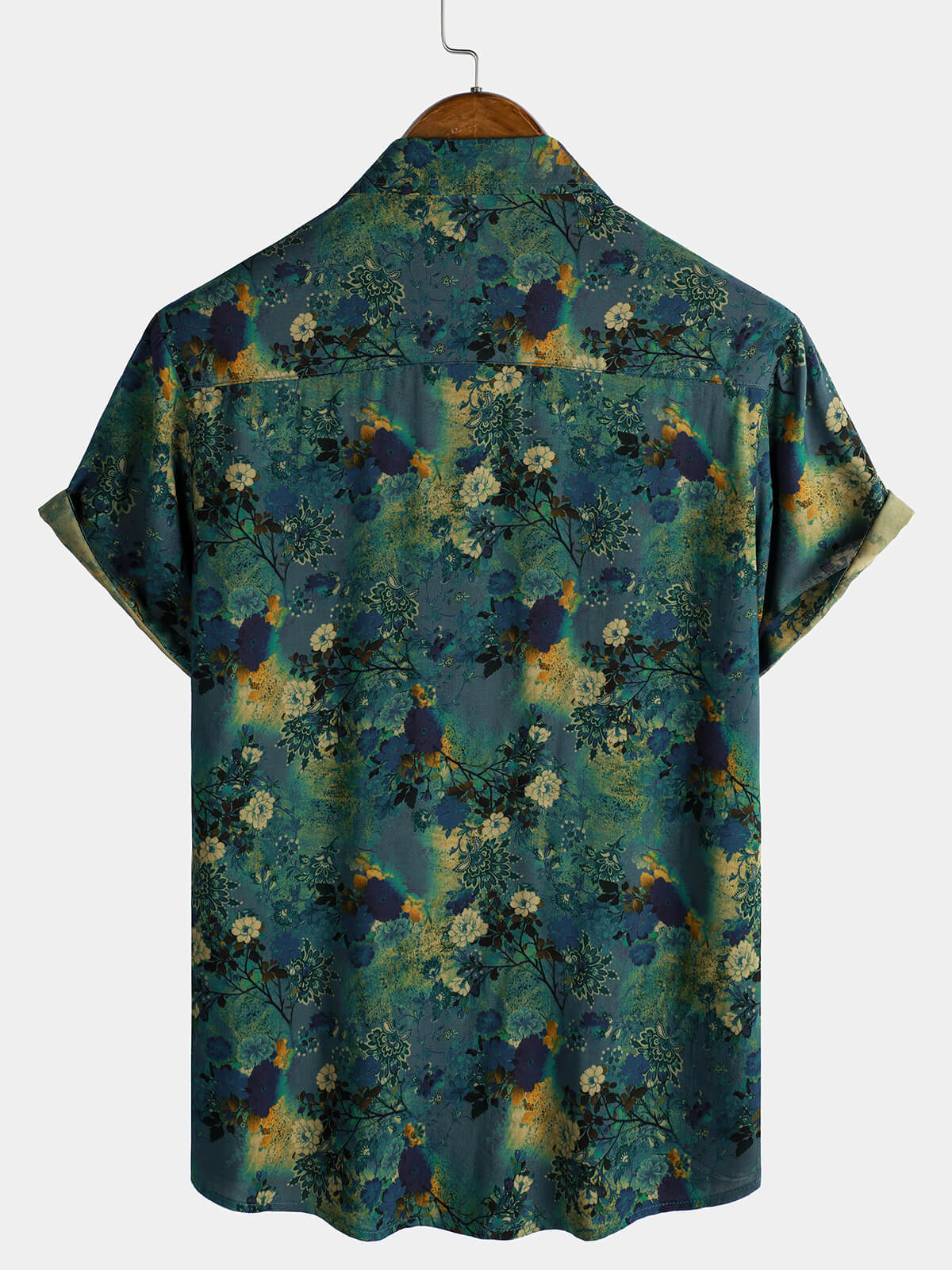 Men's Retro Floral Rayon Short Sleeve Shirt
