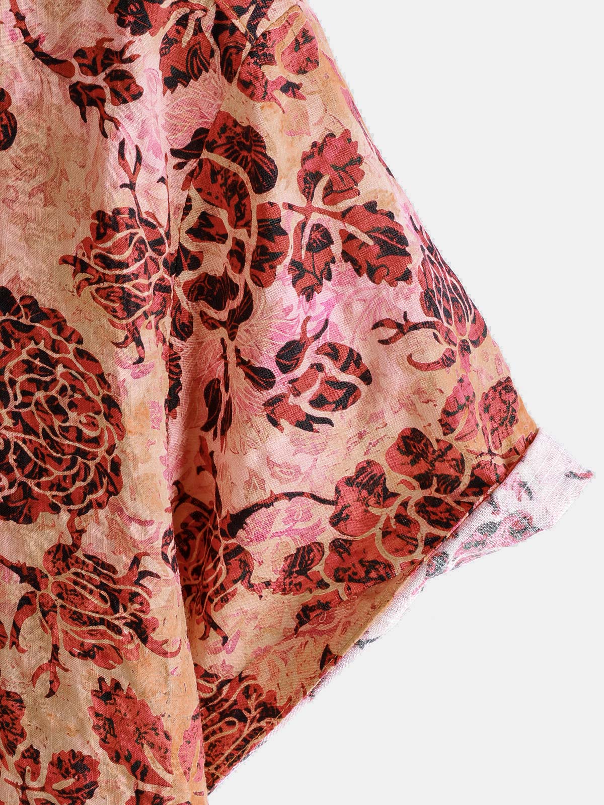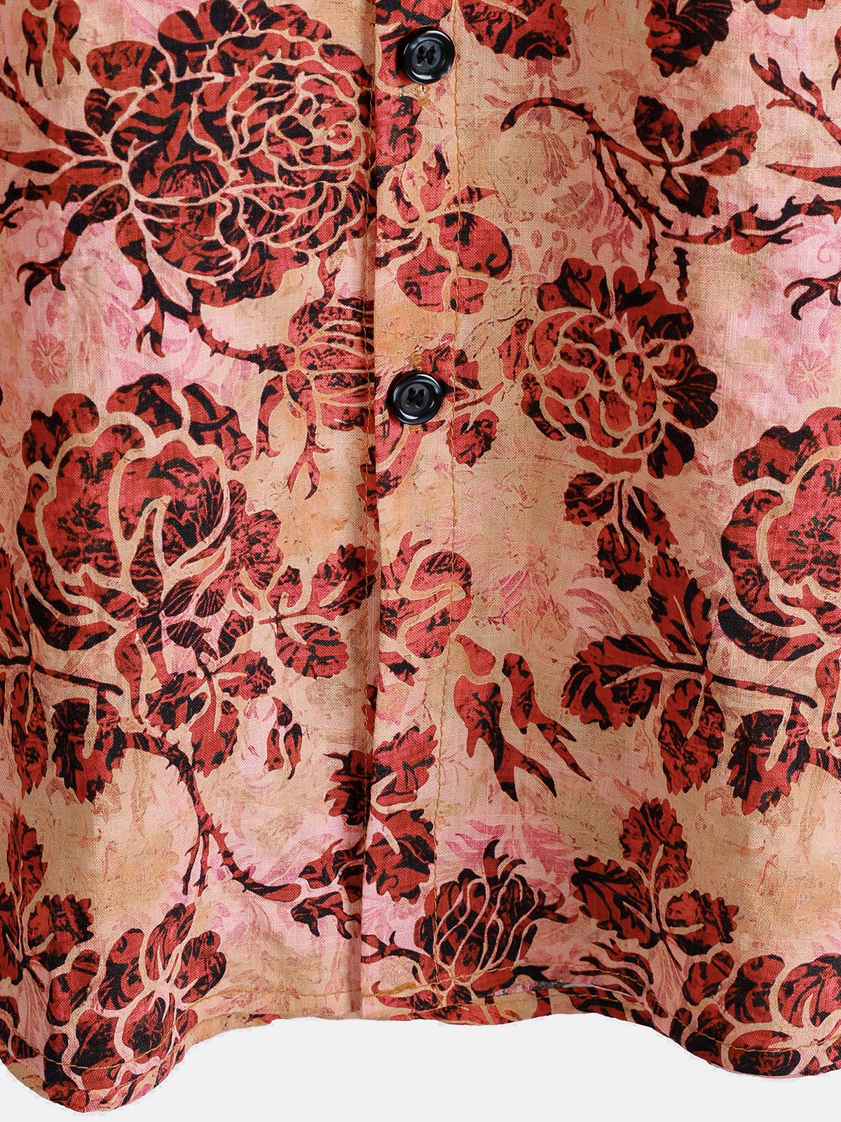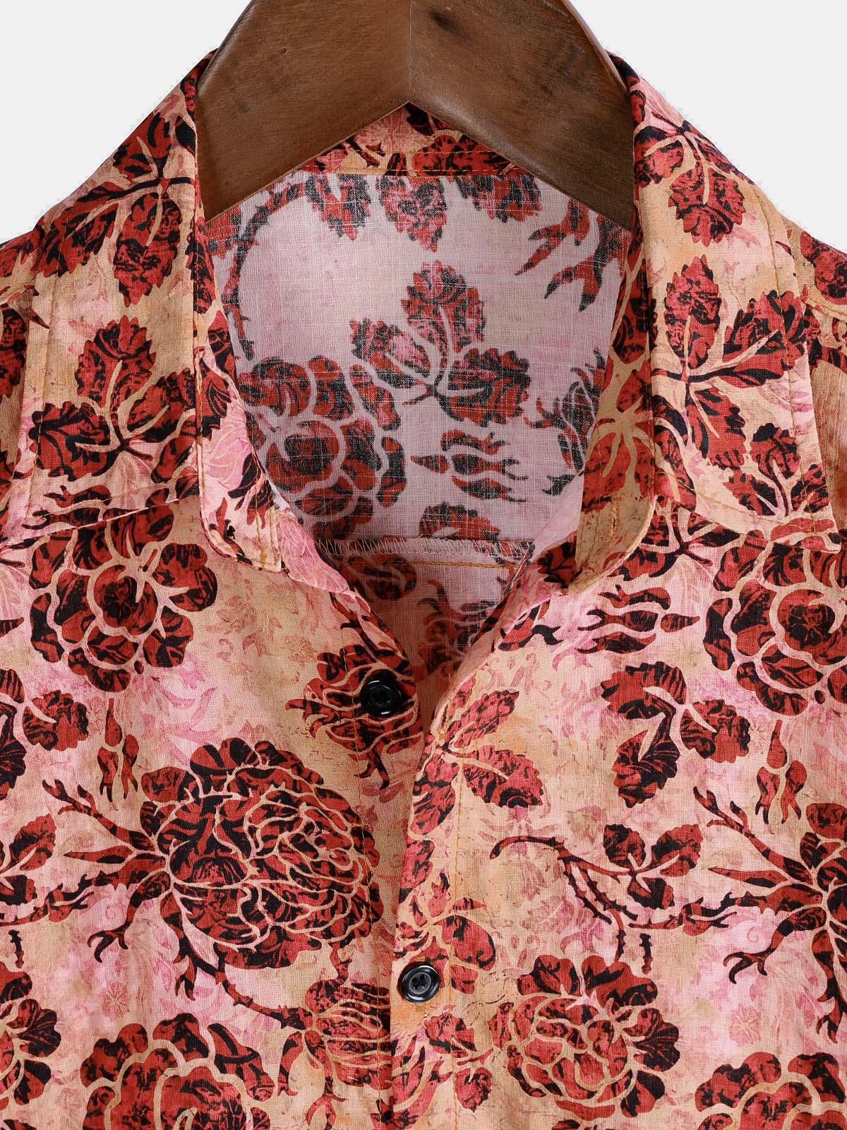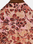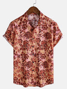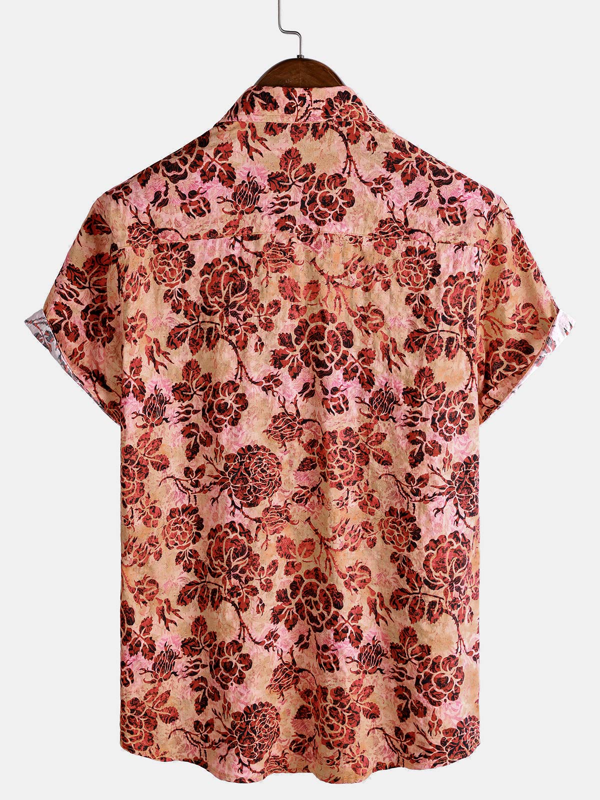 Men's Retro Rose Floral Print Short Sleeve Button Down Vacation Beach Shirt