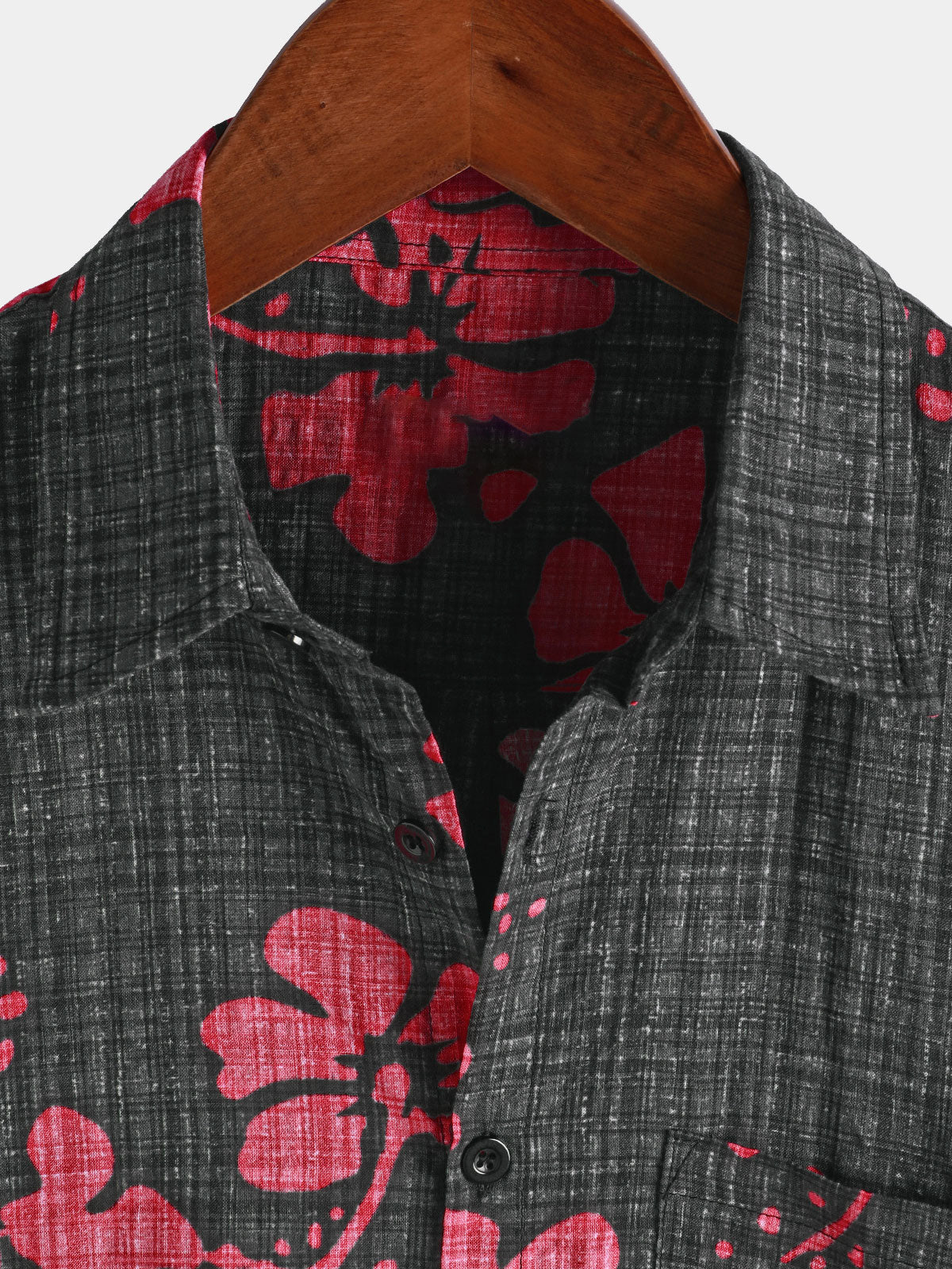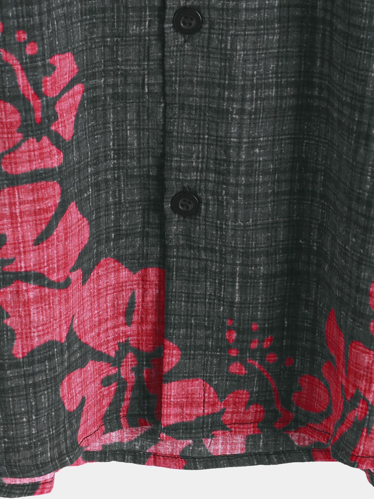 Men's Summer Red Floral Hawaiian Short Sleeve Shirt
