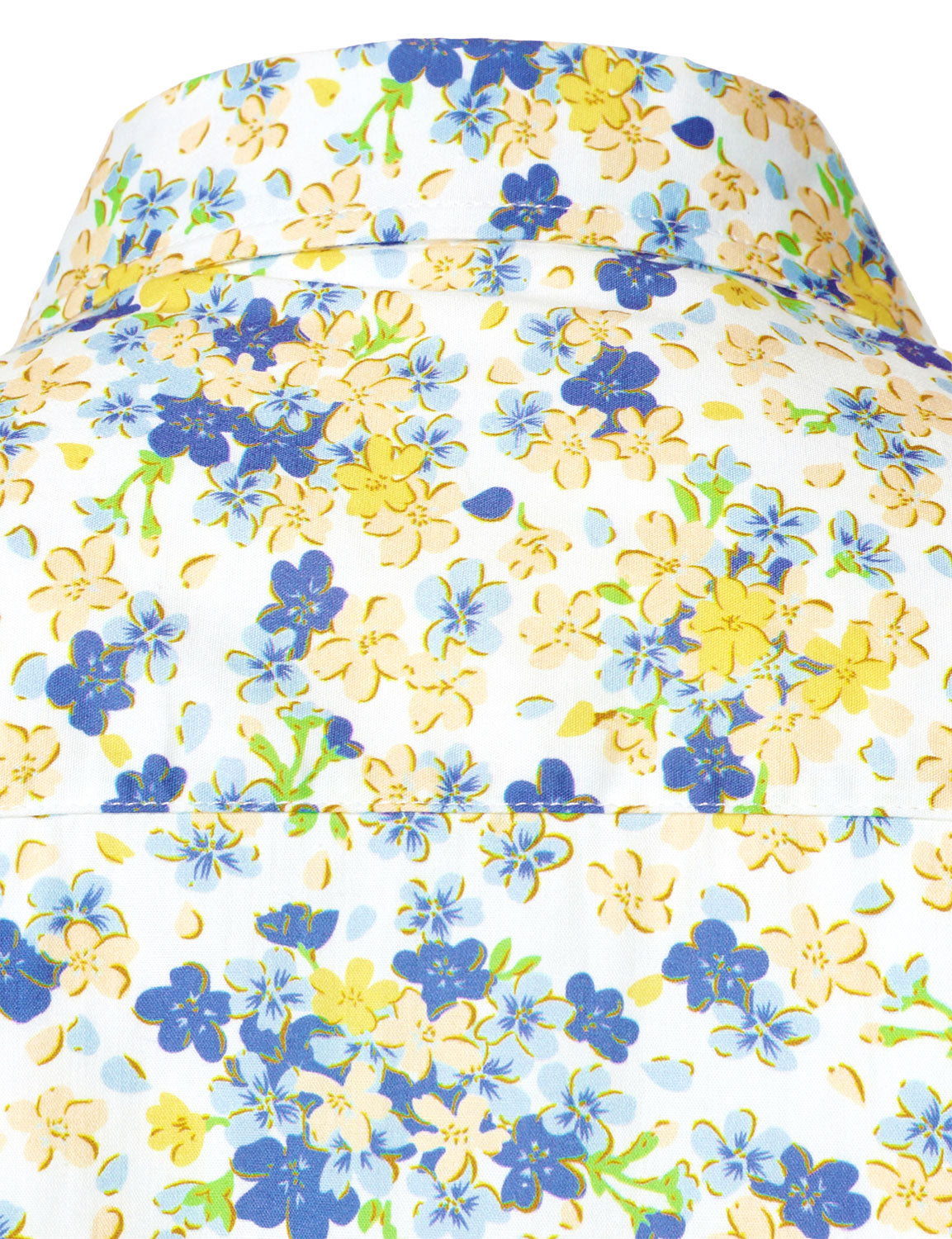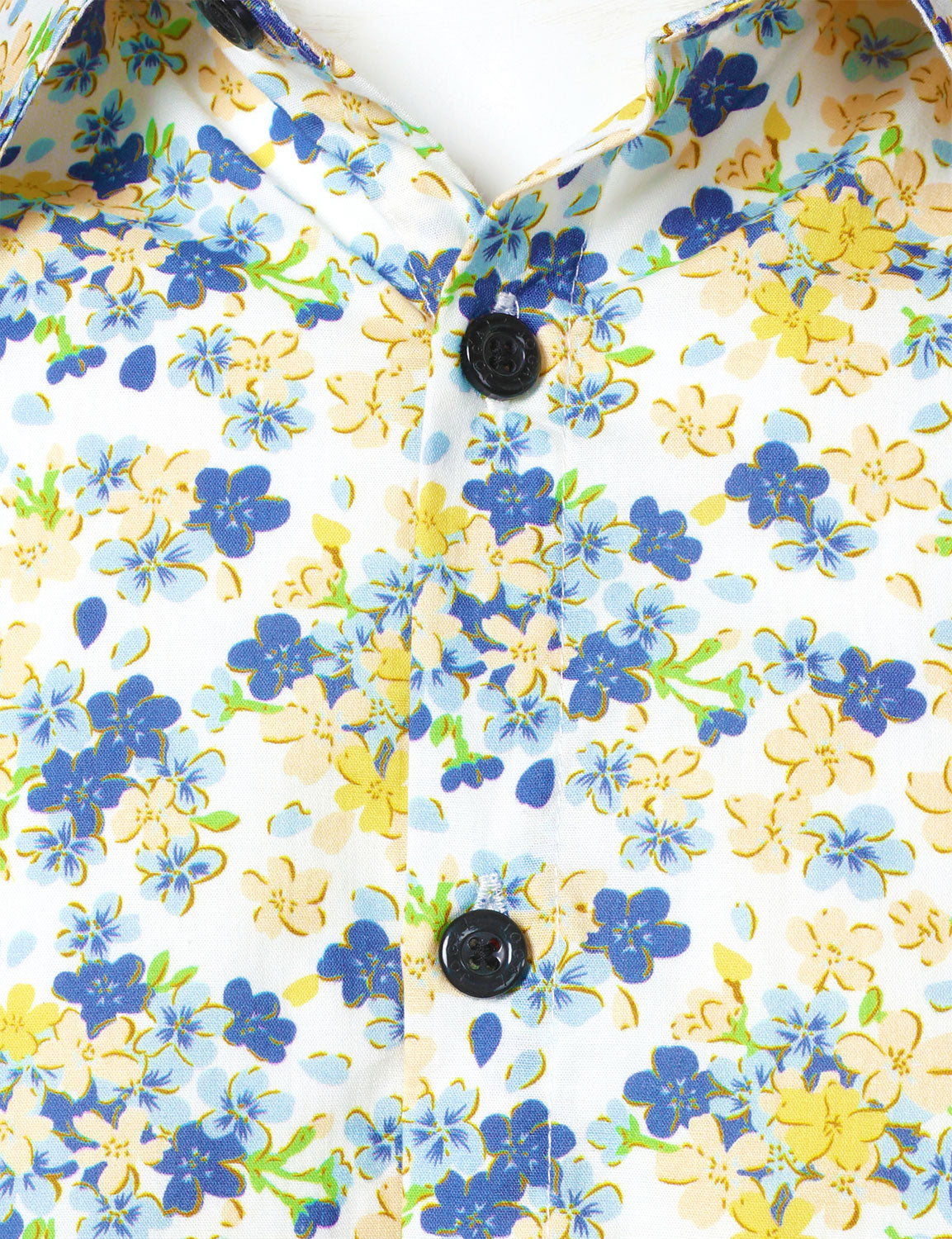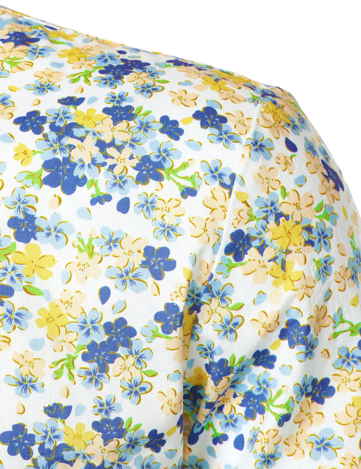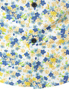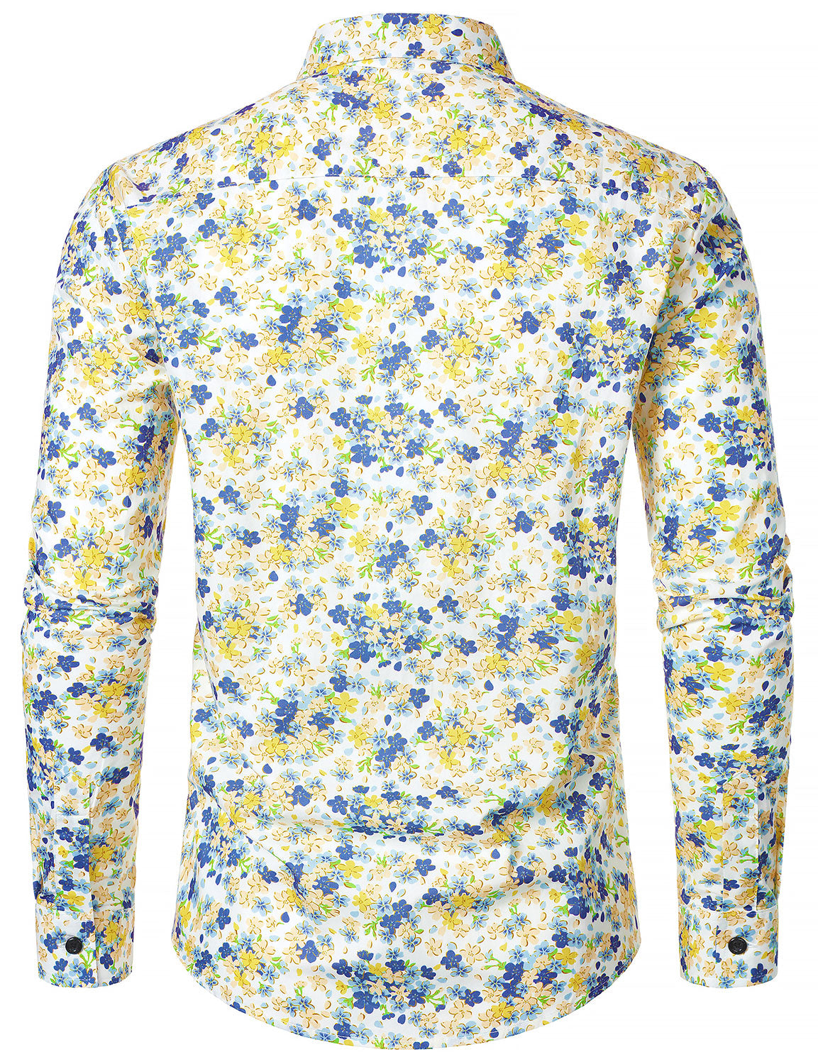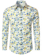 Men's White Breathable Cotton Floral Print Long Sleeve Shirt