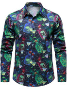 Men's Casual Holiday Wine Glass Skull Print Long Sleeve Cotton Party Shirt