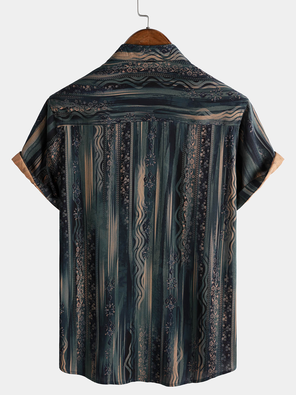 Men's Retro Striped Print Beach Short Sleeve Shirt
