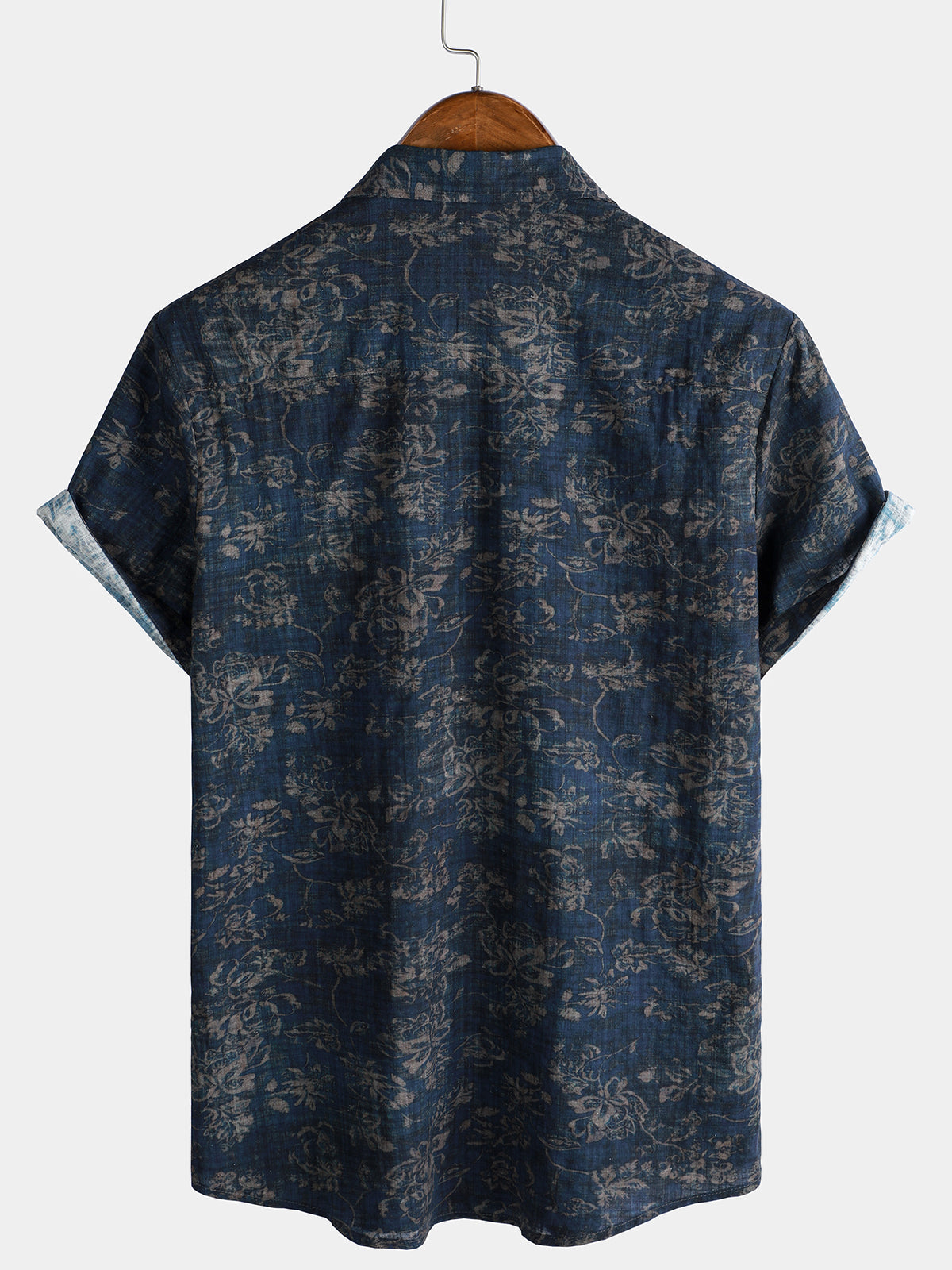 Men's Summer Retro Floral Print Pocket Short Sleeve Shirt