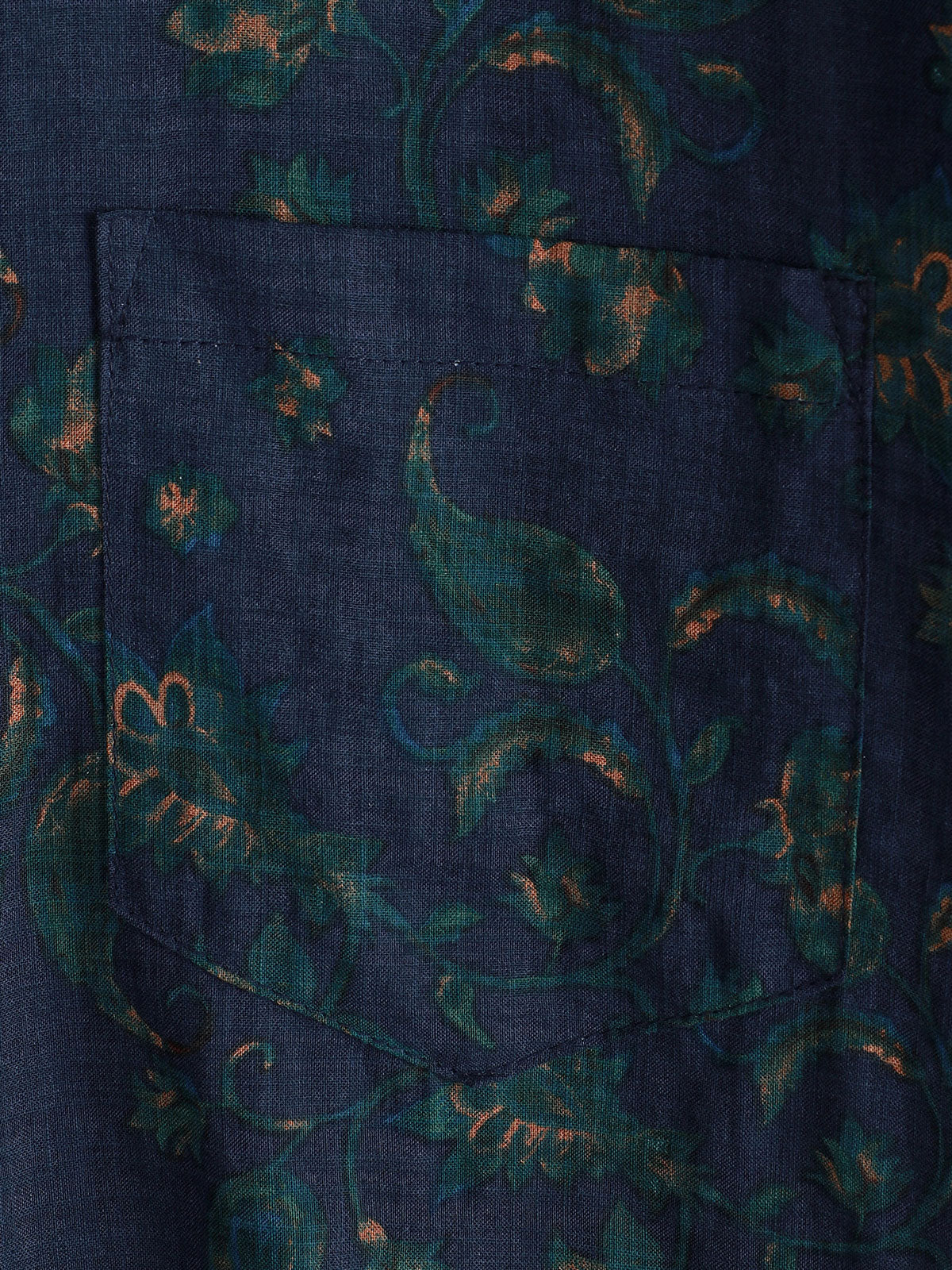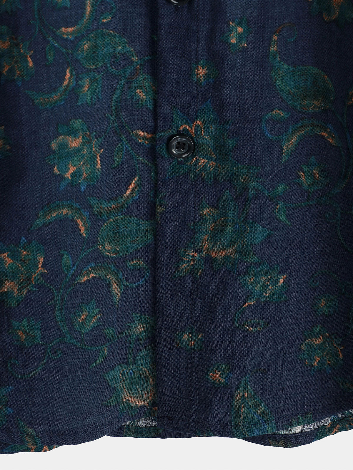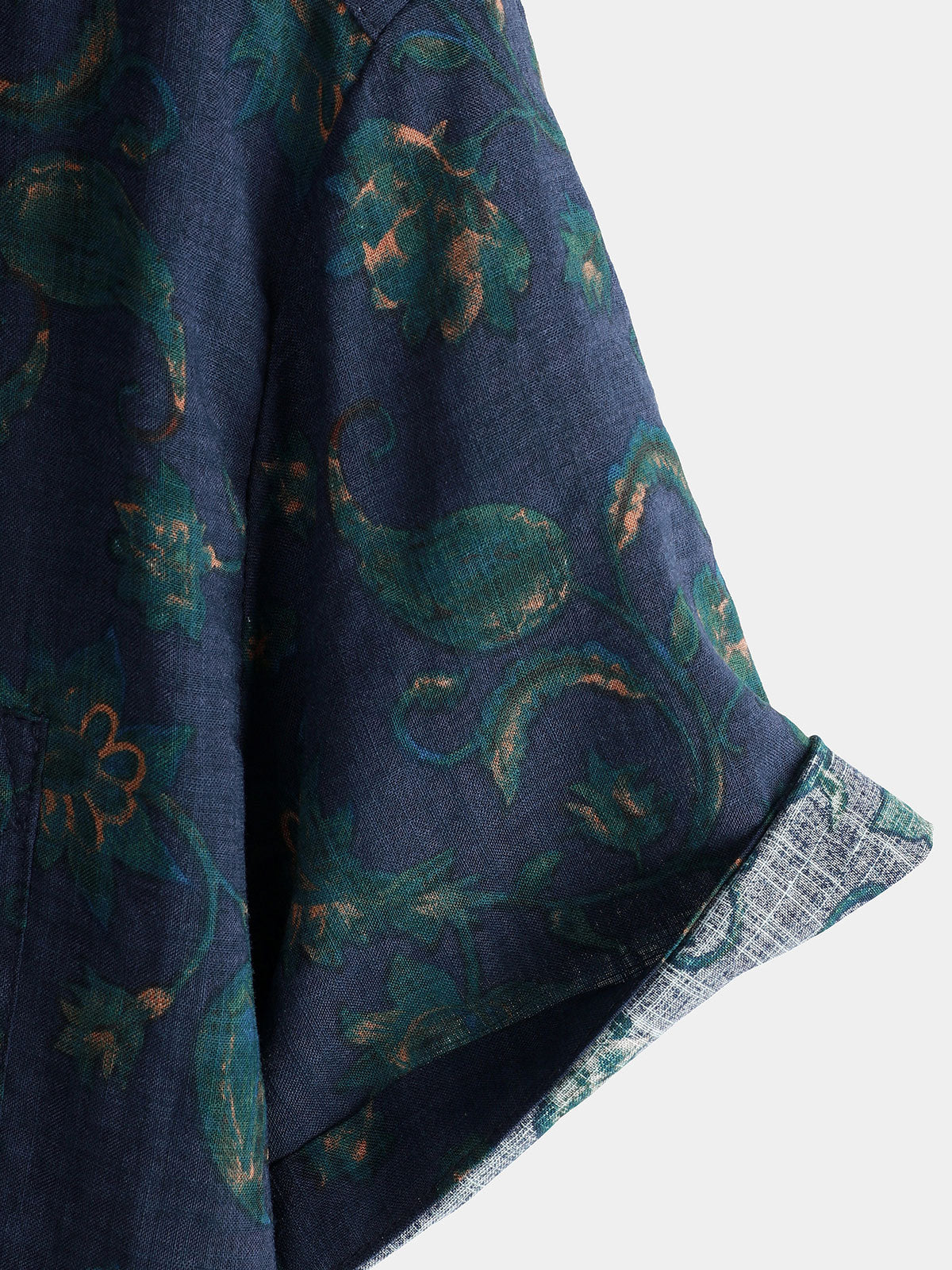Men's Blue Floral Holiday Casual Pocket Short Sleeve Button Up Shirt
