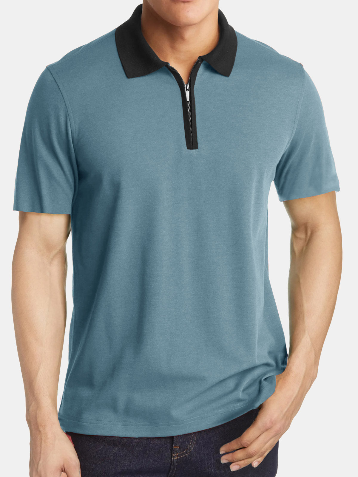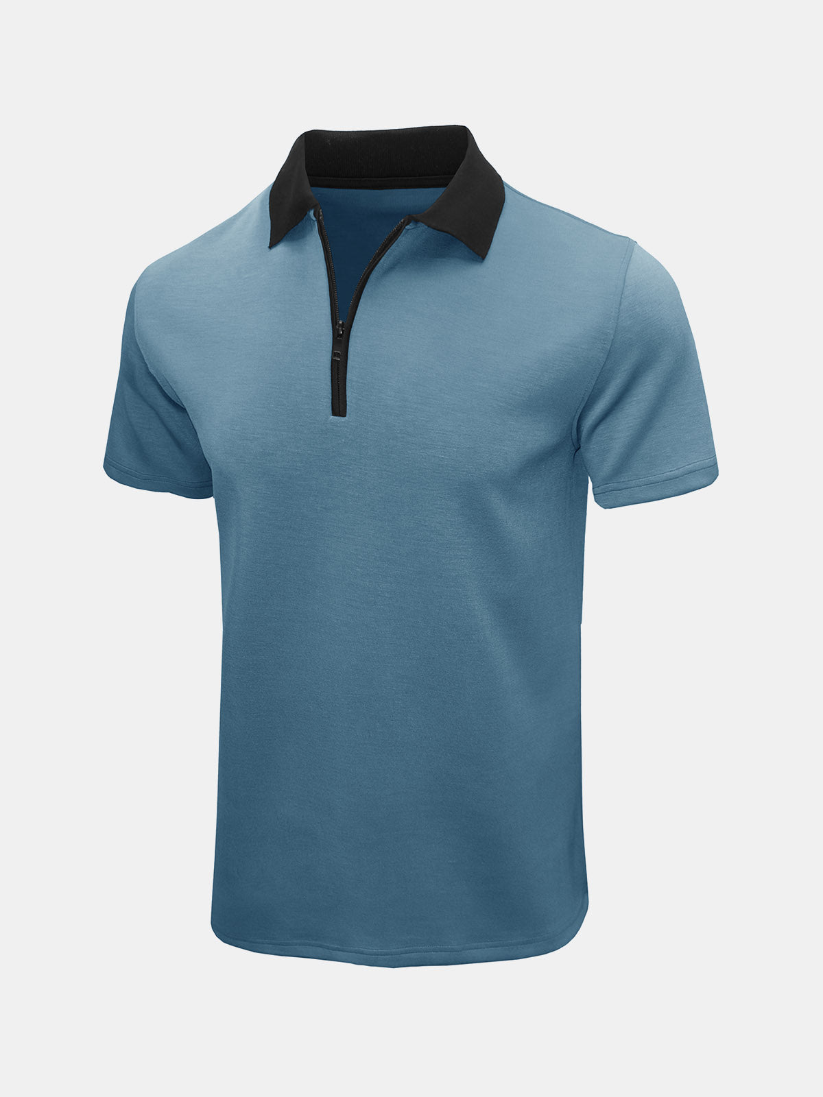 Men's Casual Summer Breathable Zip Short Sleeve Polo Shirt