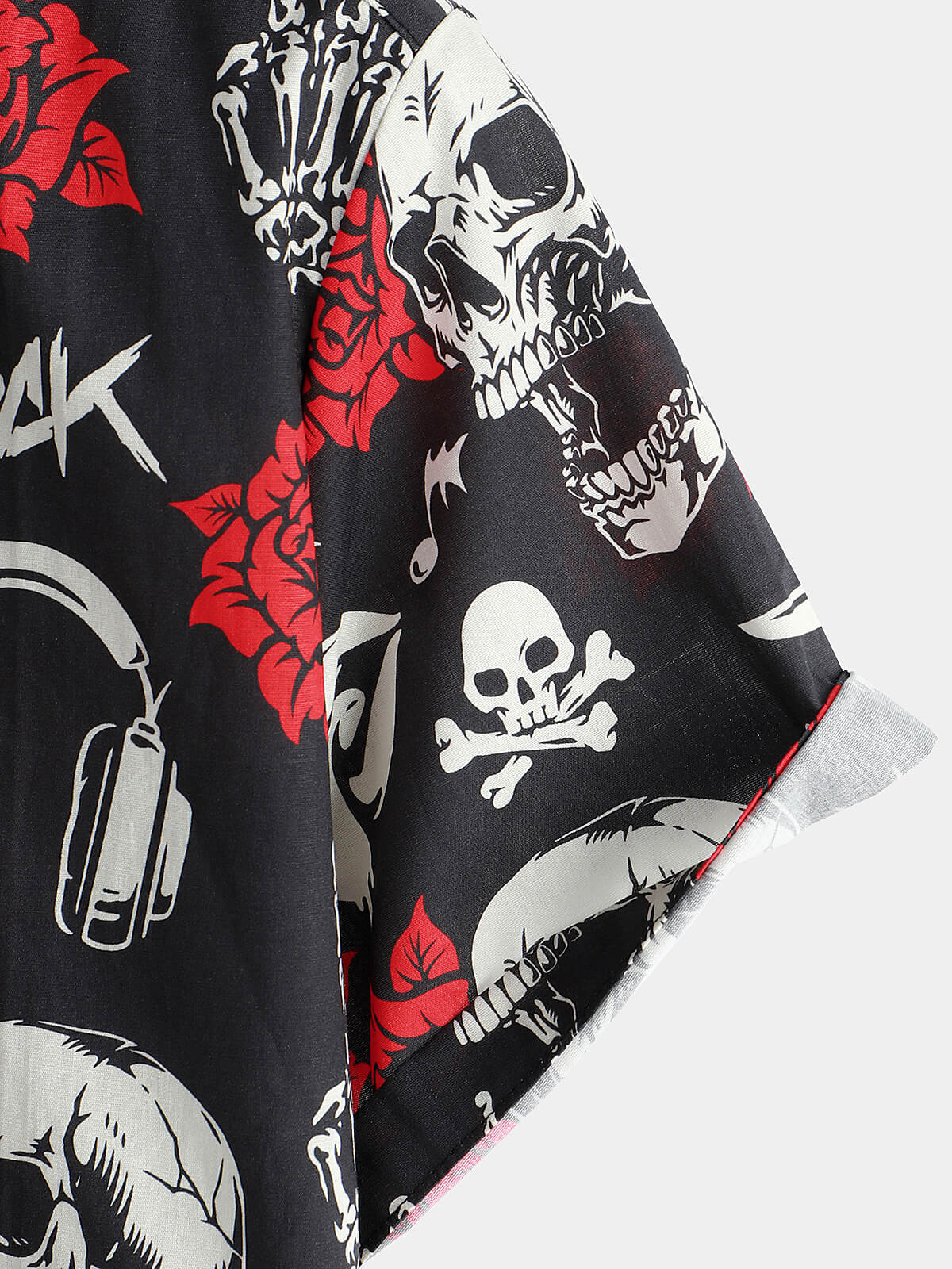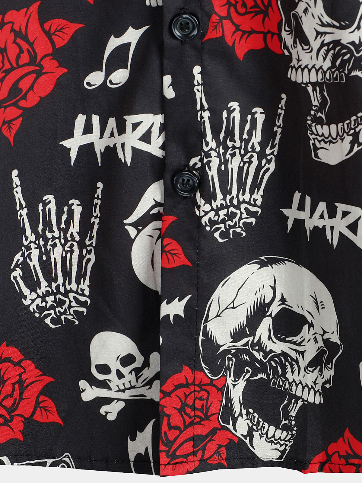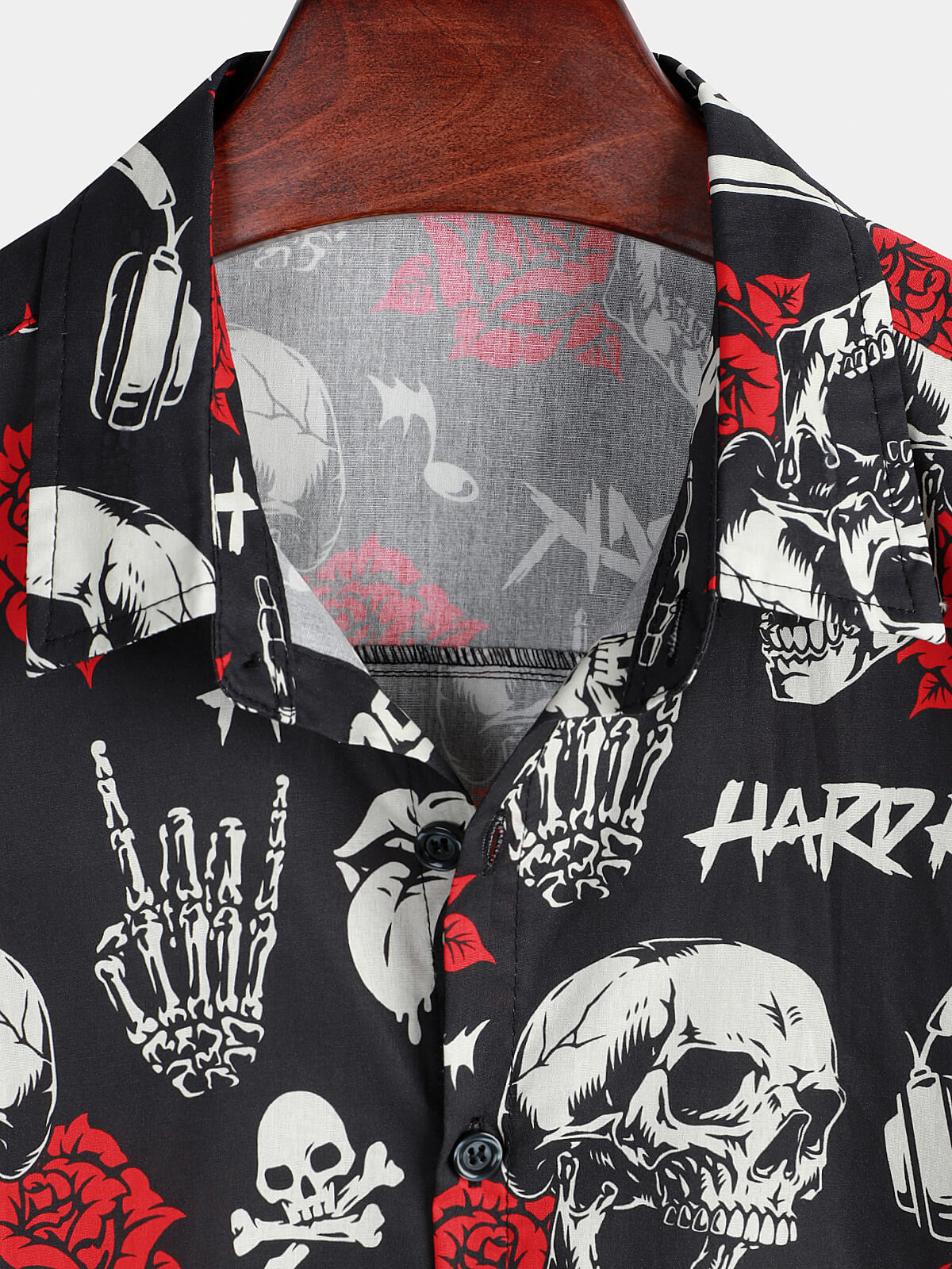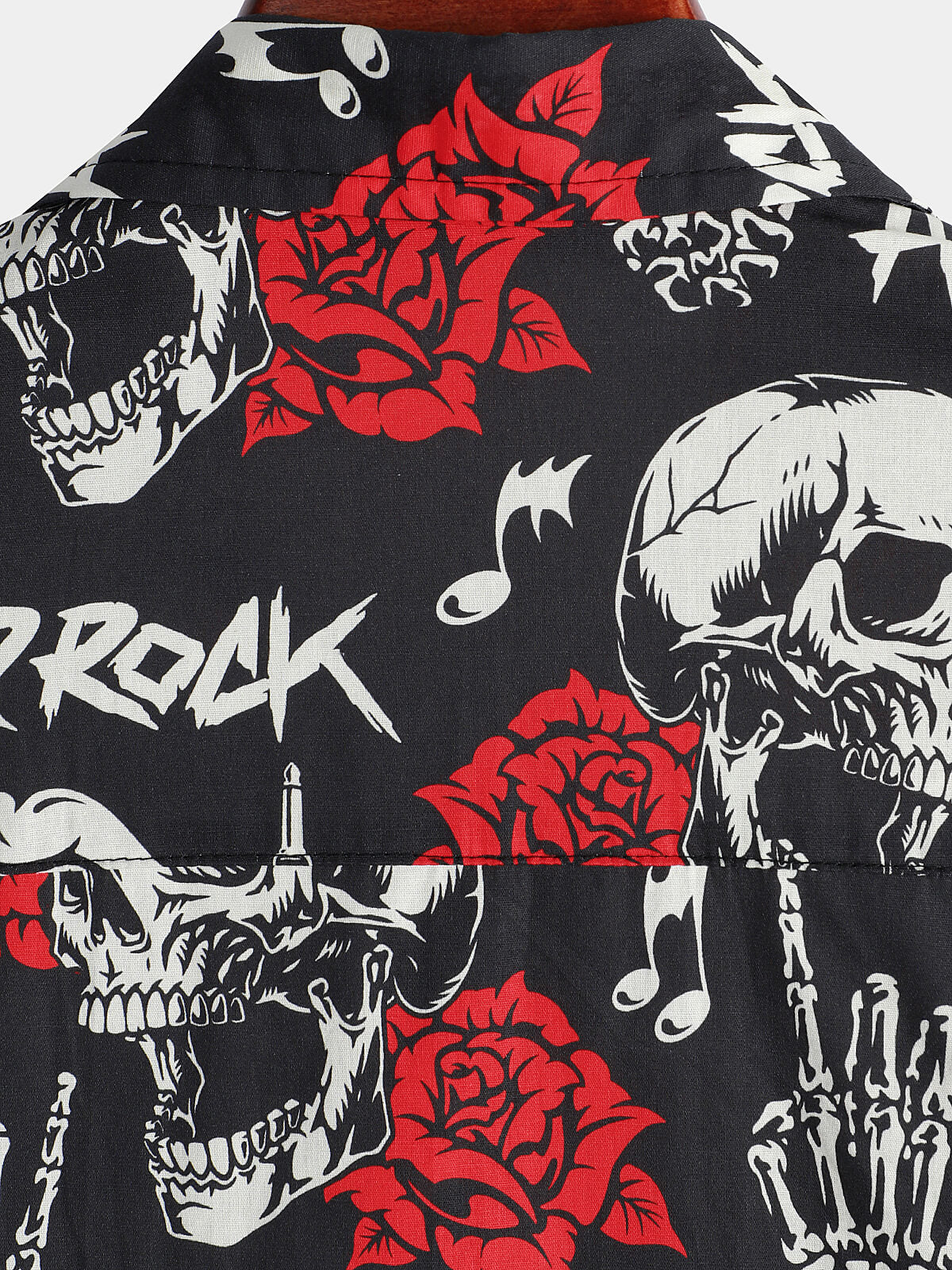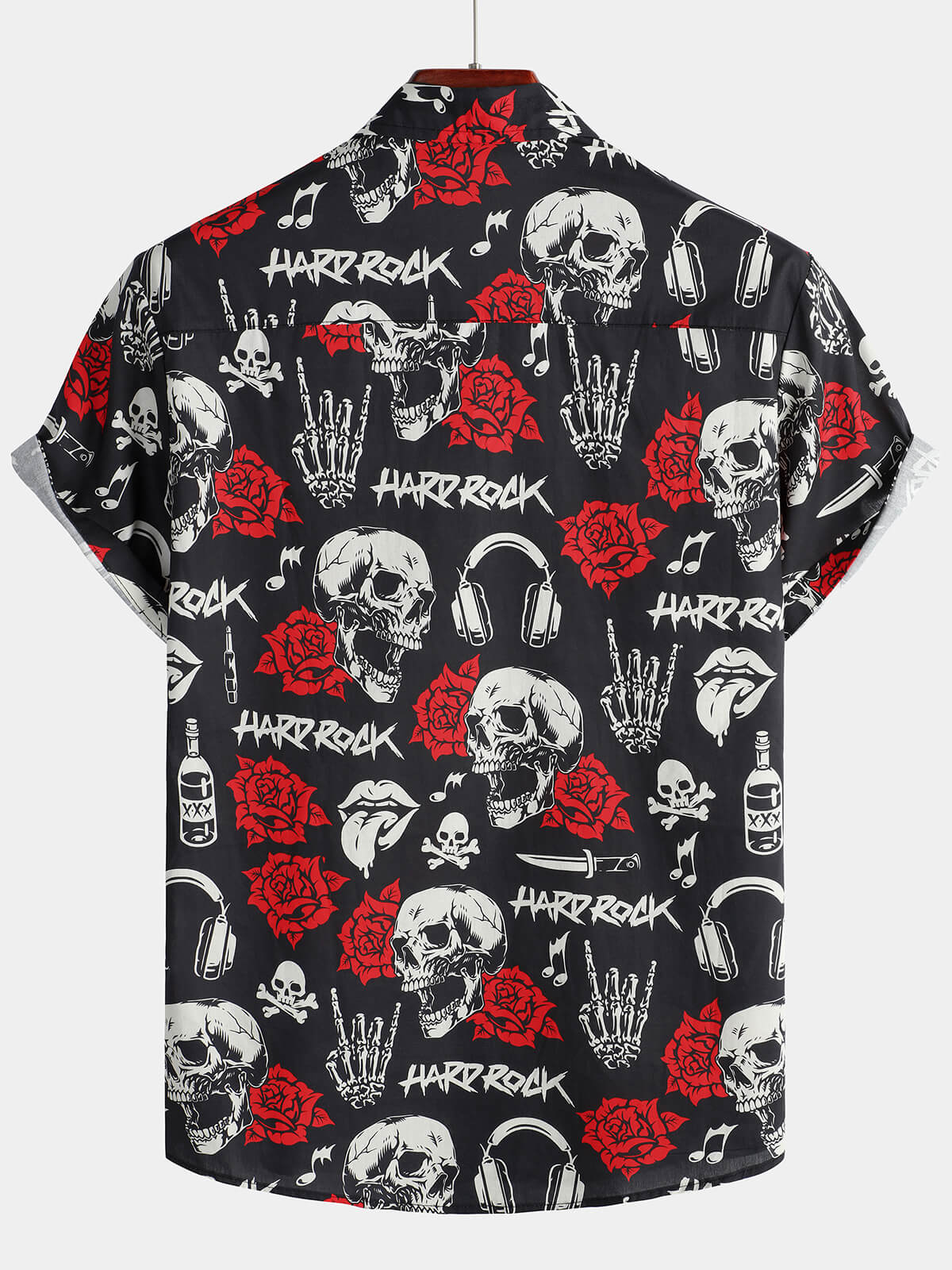Men's Skull Rose Floral Punk Rocker Cool Rock Music Short Sleeve Hawaiian Shirt