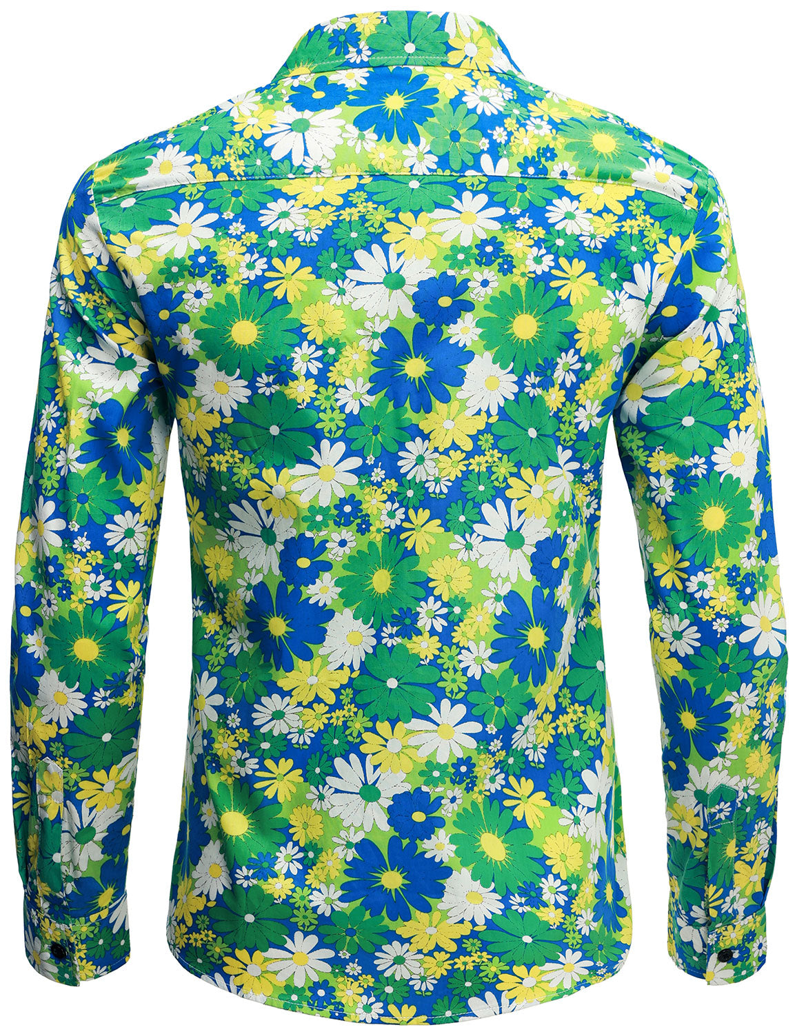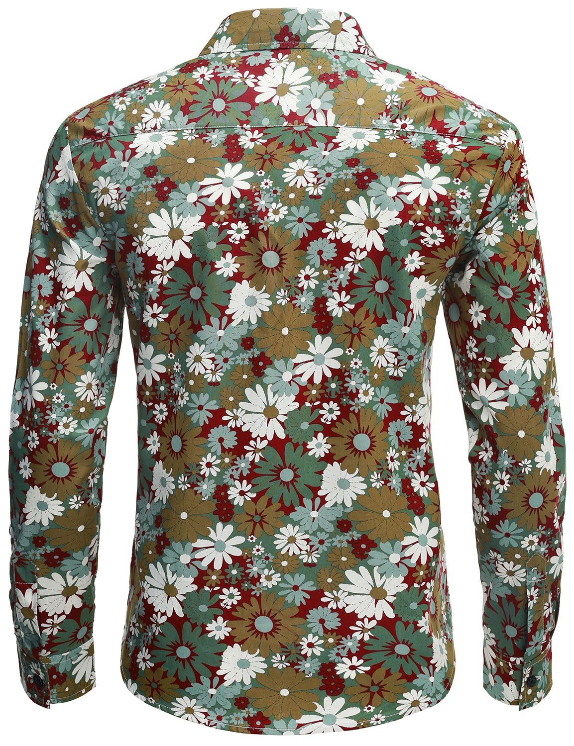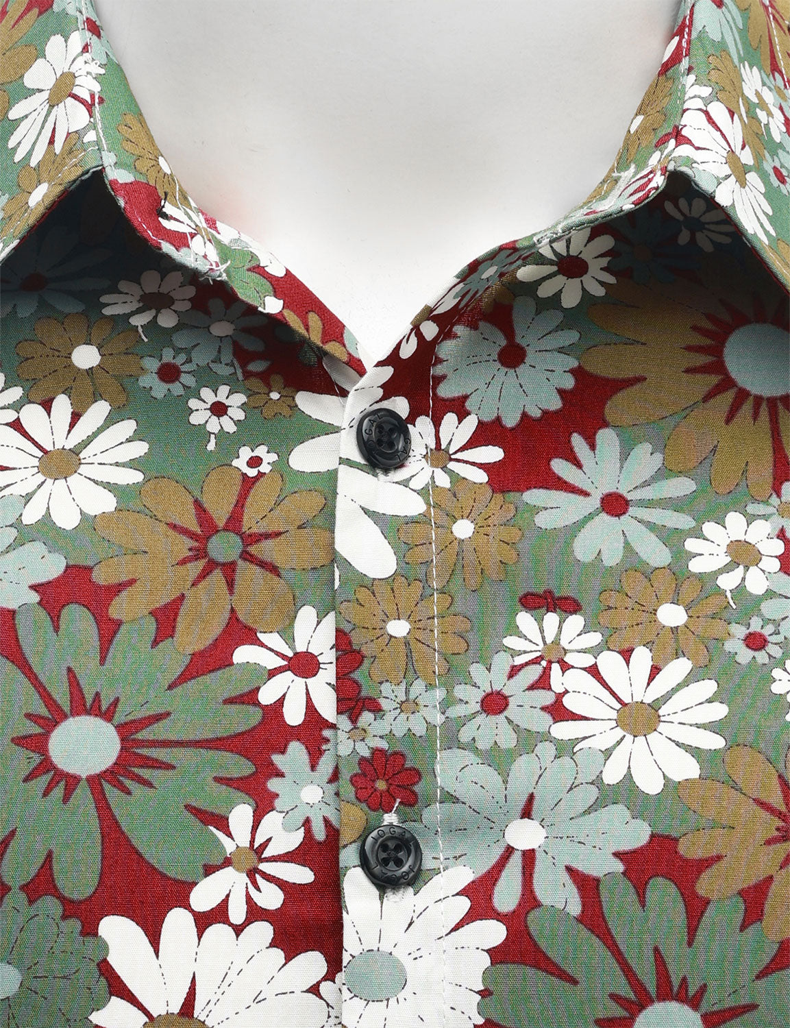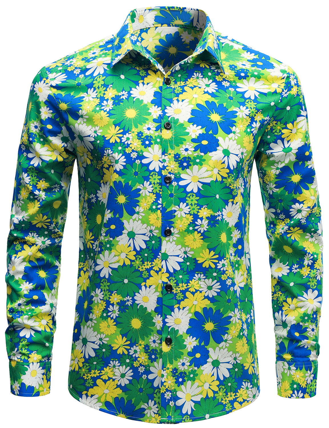 Men's Cotton Green Floral Button Up Long Sleeve Shirt