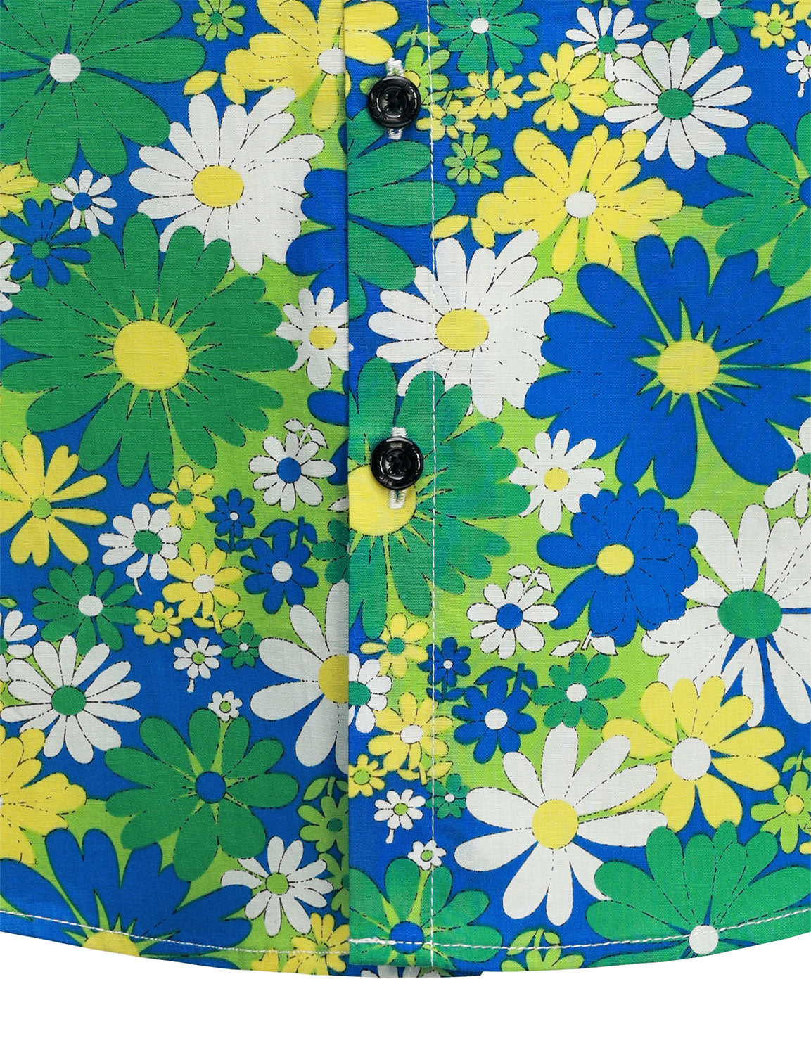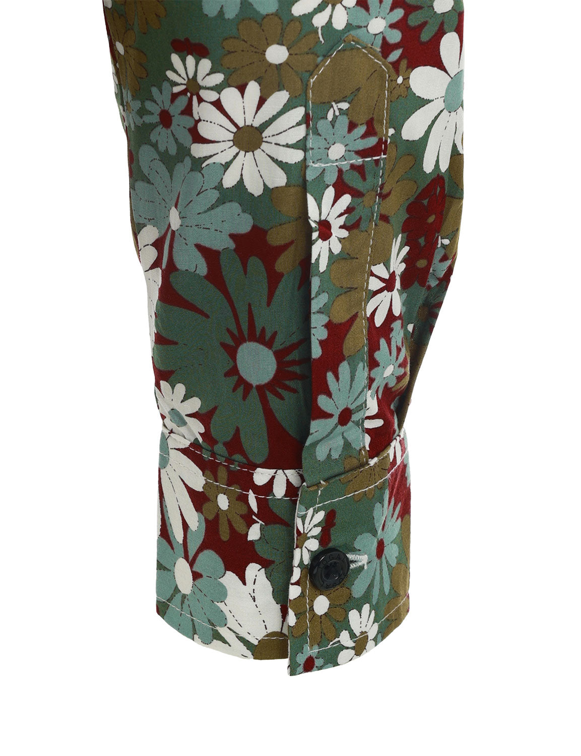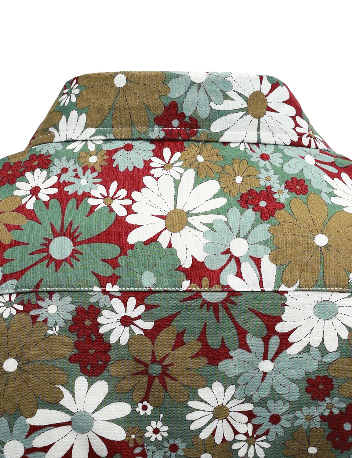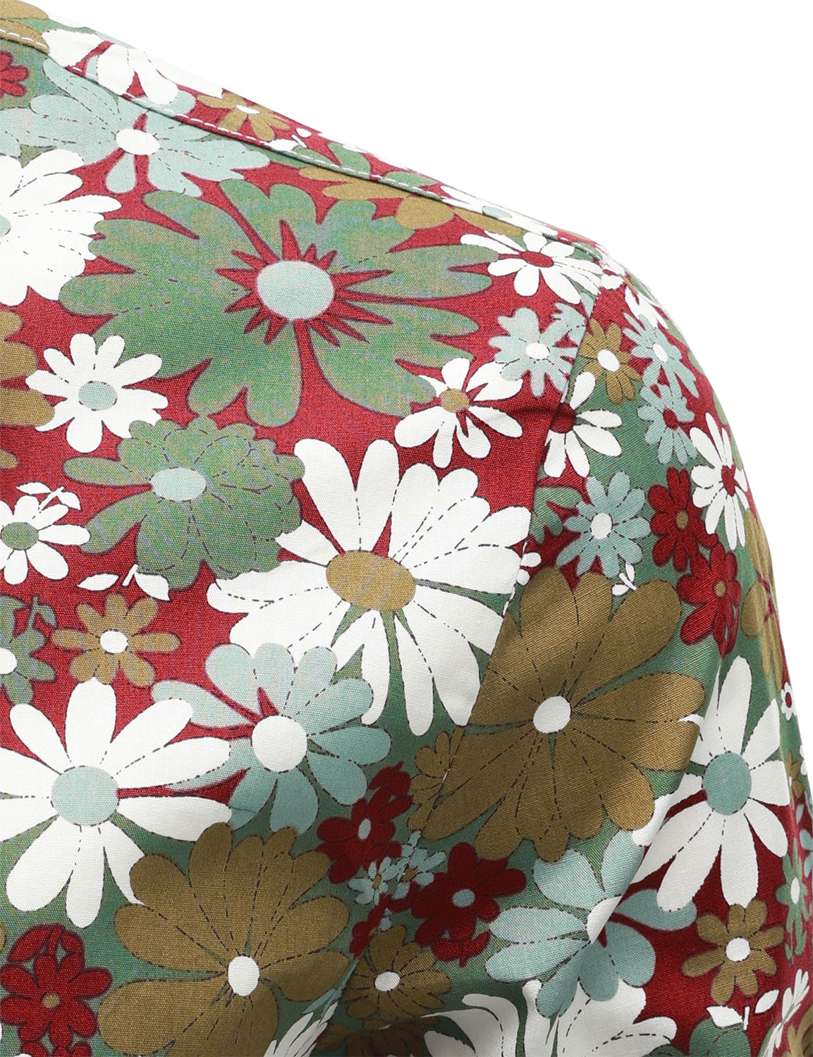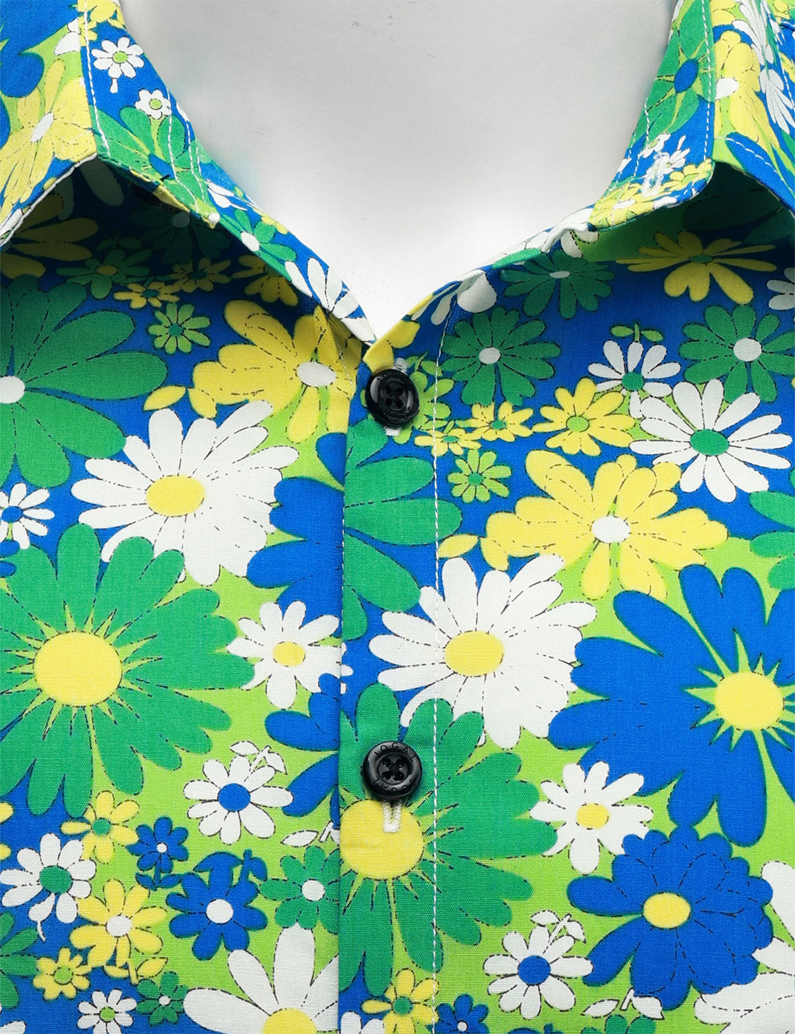 Men's Cotton Green Floral Button Up Long Sleeve Shirt