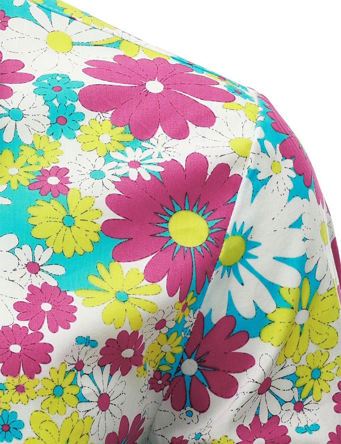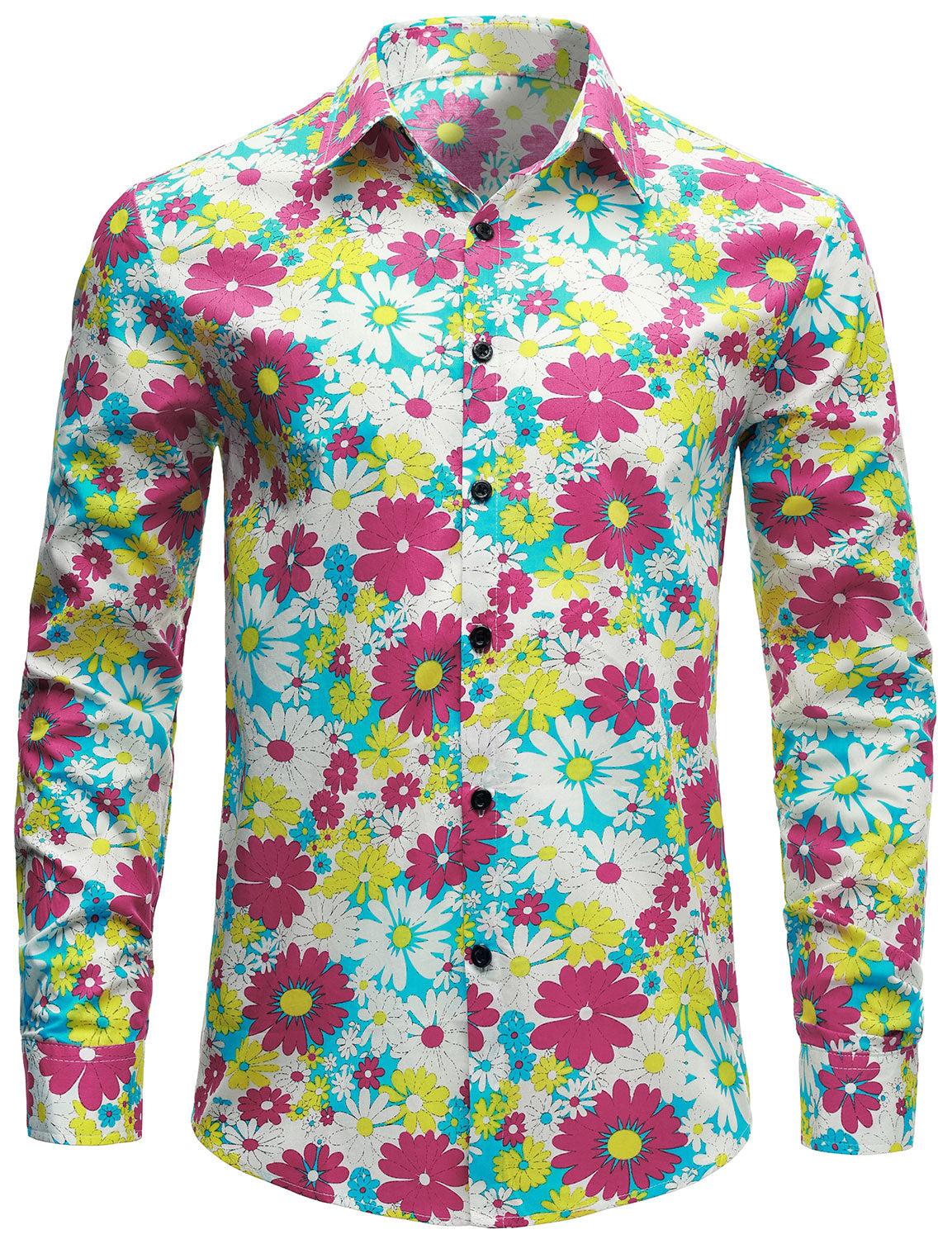 Men's Vintage Floral Pink Cotton Button Up Long Sleeve Shirt