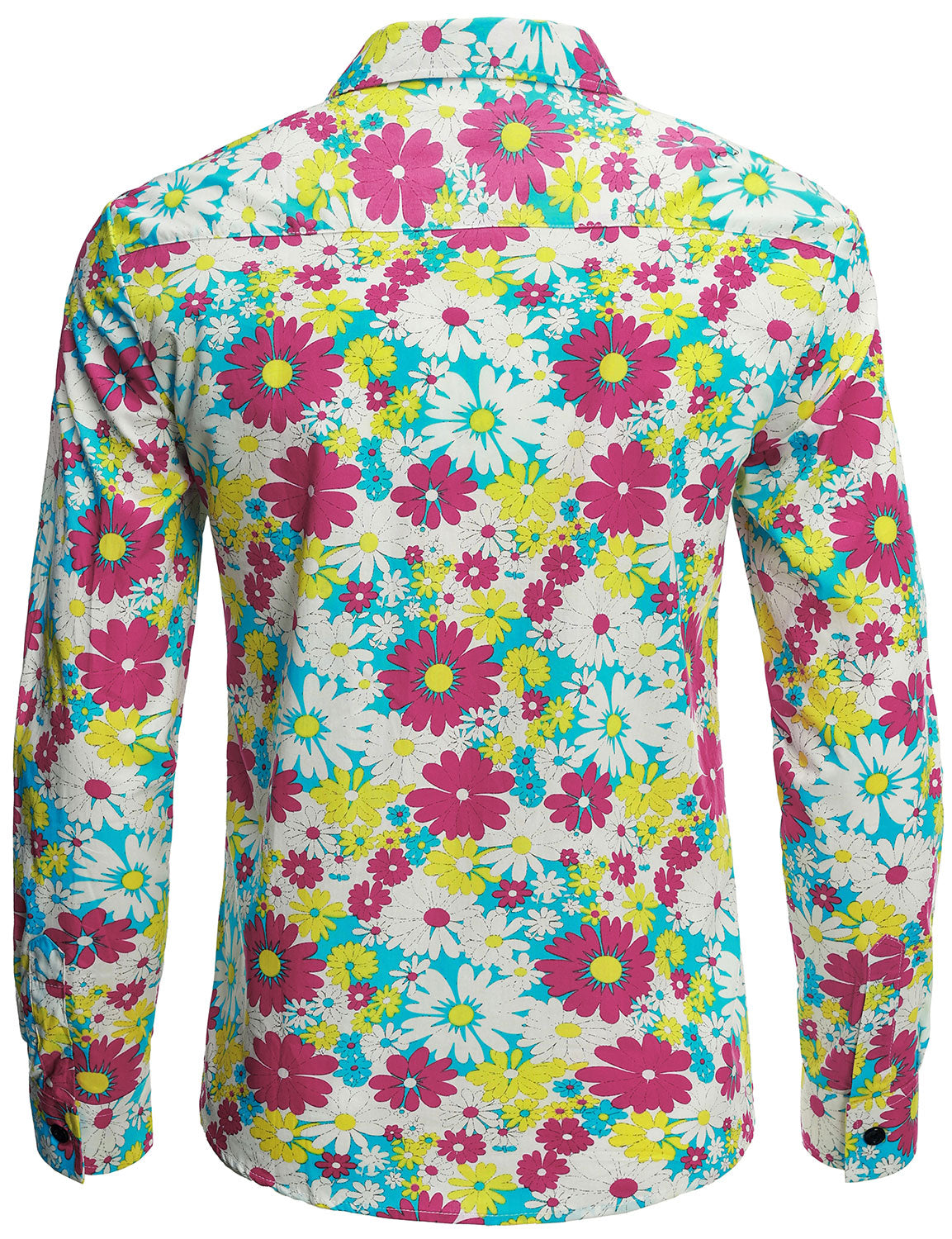 Men's Cotton Blue Floral Button Up Long Sleeve Shirt