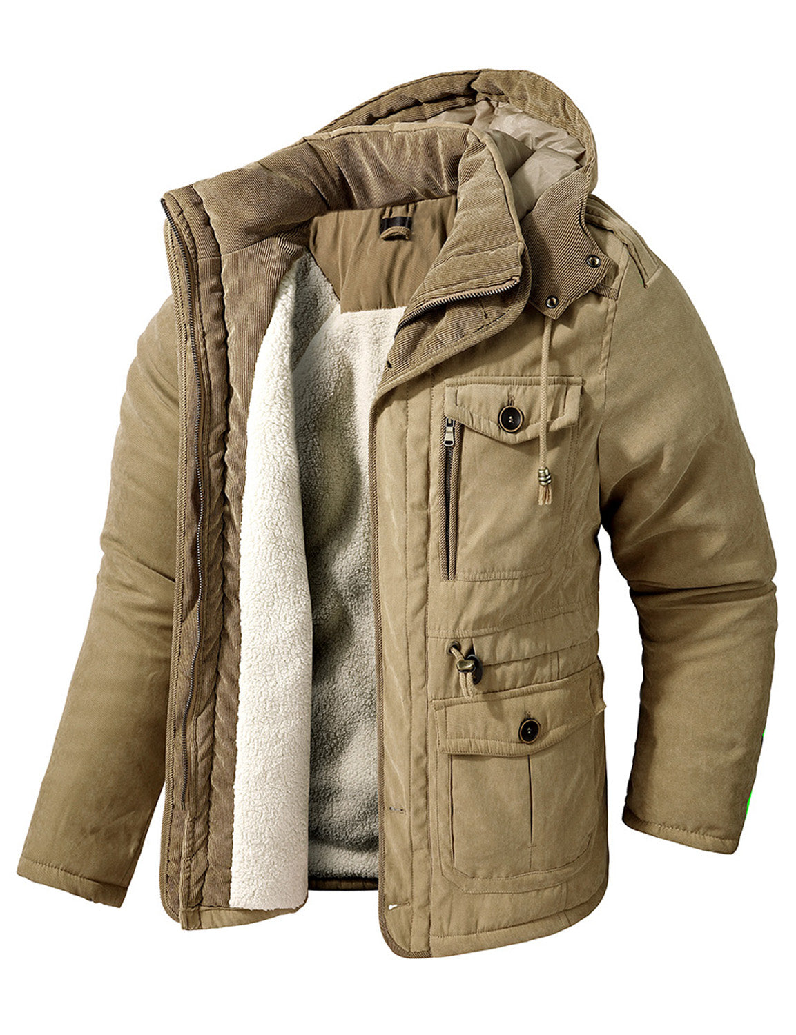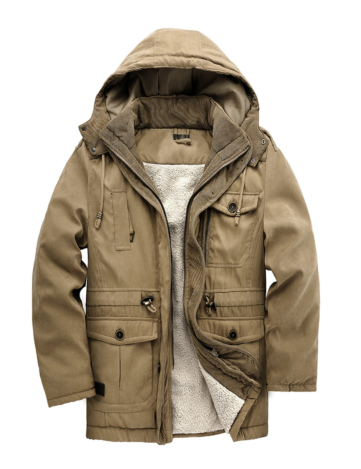 Men's Casual Hooded Sherpa Lined Windproof Coat Warm Winter Jacket