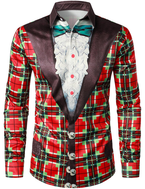 Men's Vintage Red Plaid Funny Holiday Ugly Christmas Long Sleeve Shirt