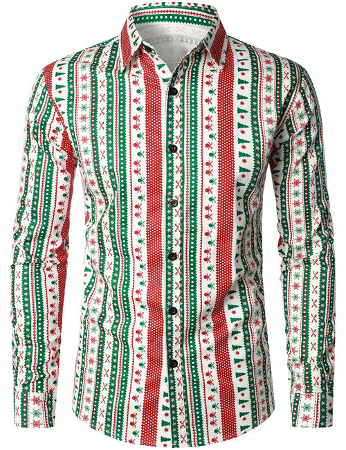 Men's Christmas Funny Outfit Themed Top Vacation Button Down Long Sleeve Dress Shirt