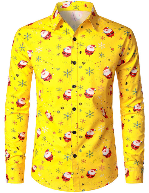 Men's Christmas Santa Claus Snowman Print Regular Fit Long Sleeve Shirt