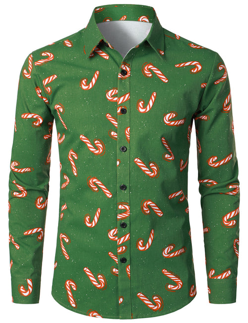 Men's Christmas Print Regular Fit Green Long Sleeve Dress Shirt