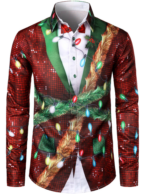 Men's Christmas Funny Outfit Holiday Party Ugly Long Sleeve Shirt
